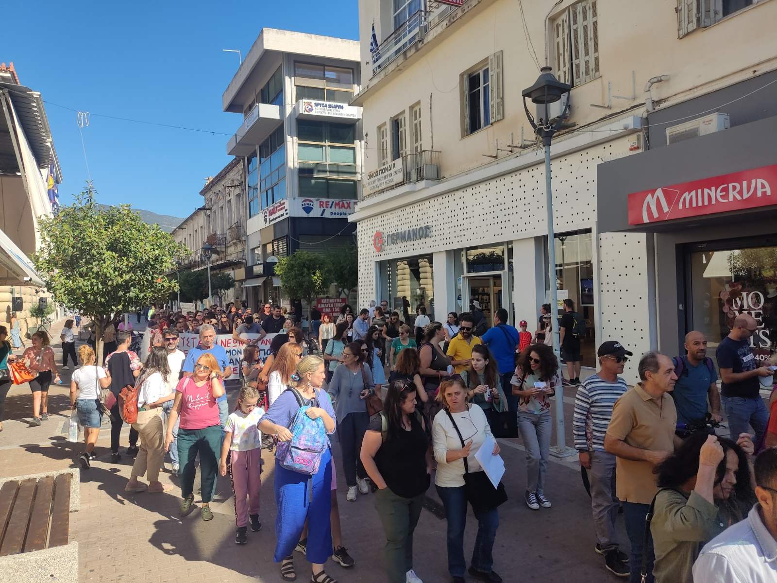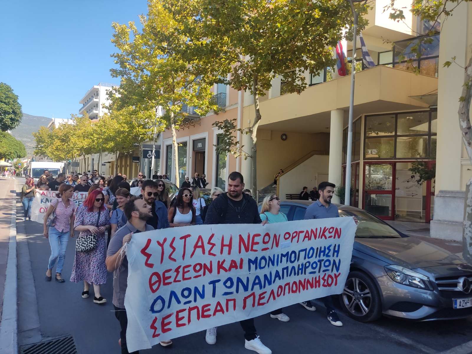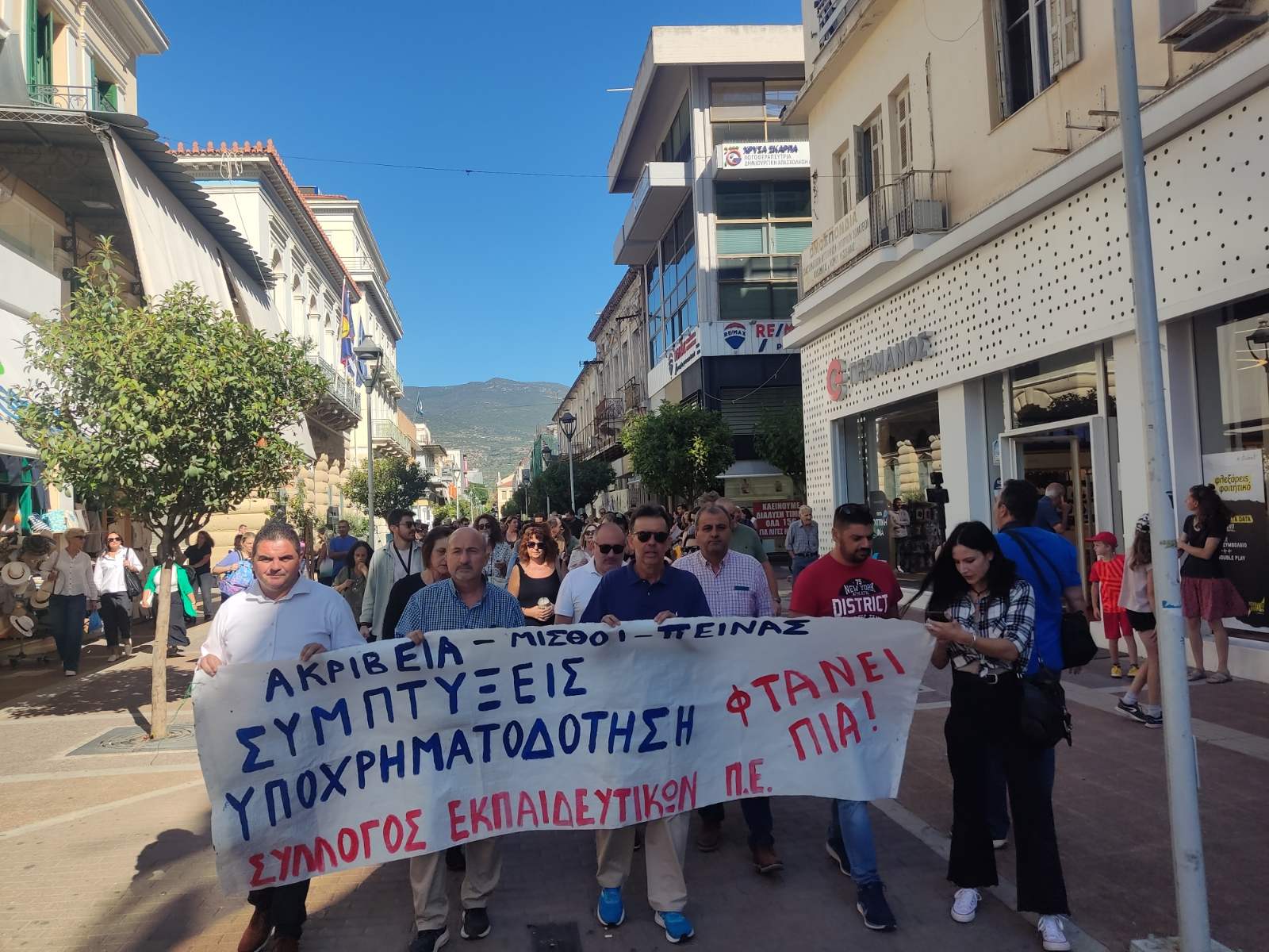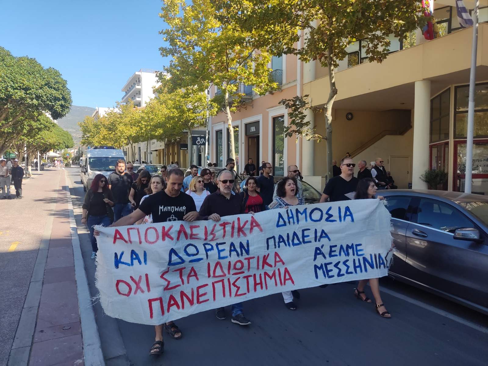 Ακολούθησε πορεία των εκπαιδευτικών με συνθήματα στους δρόμους γύρω από την κεντρική πλατεία της Καλαμάτας.