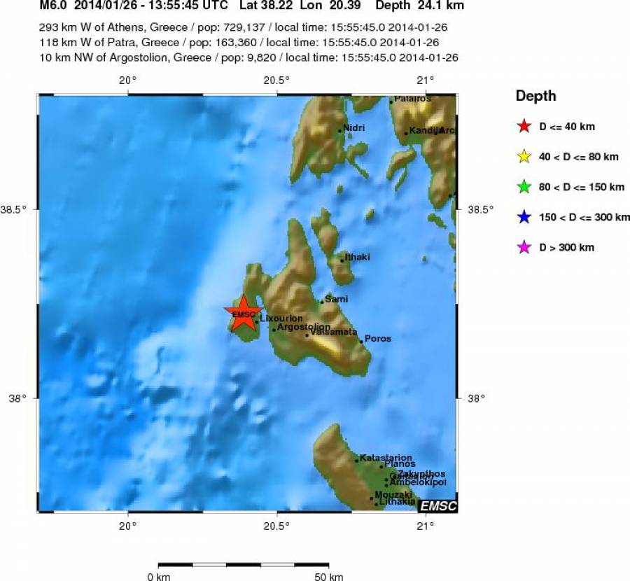 Το επίκεντρο του σεισμού σύμφωνα με το Ευρωμεσογειακό Σεισμολογικό Κέντρο εντοπίζεται 11 χιλιόμετρα βορειοδυτικά του Αργοστολίου και 7 χιλιόμετρα βόρεια από το Ληξούρι.