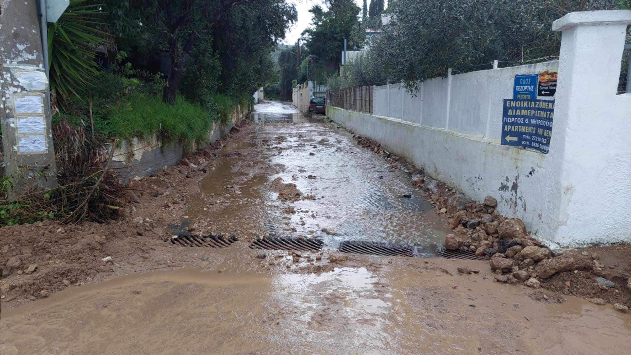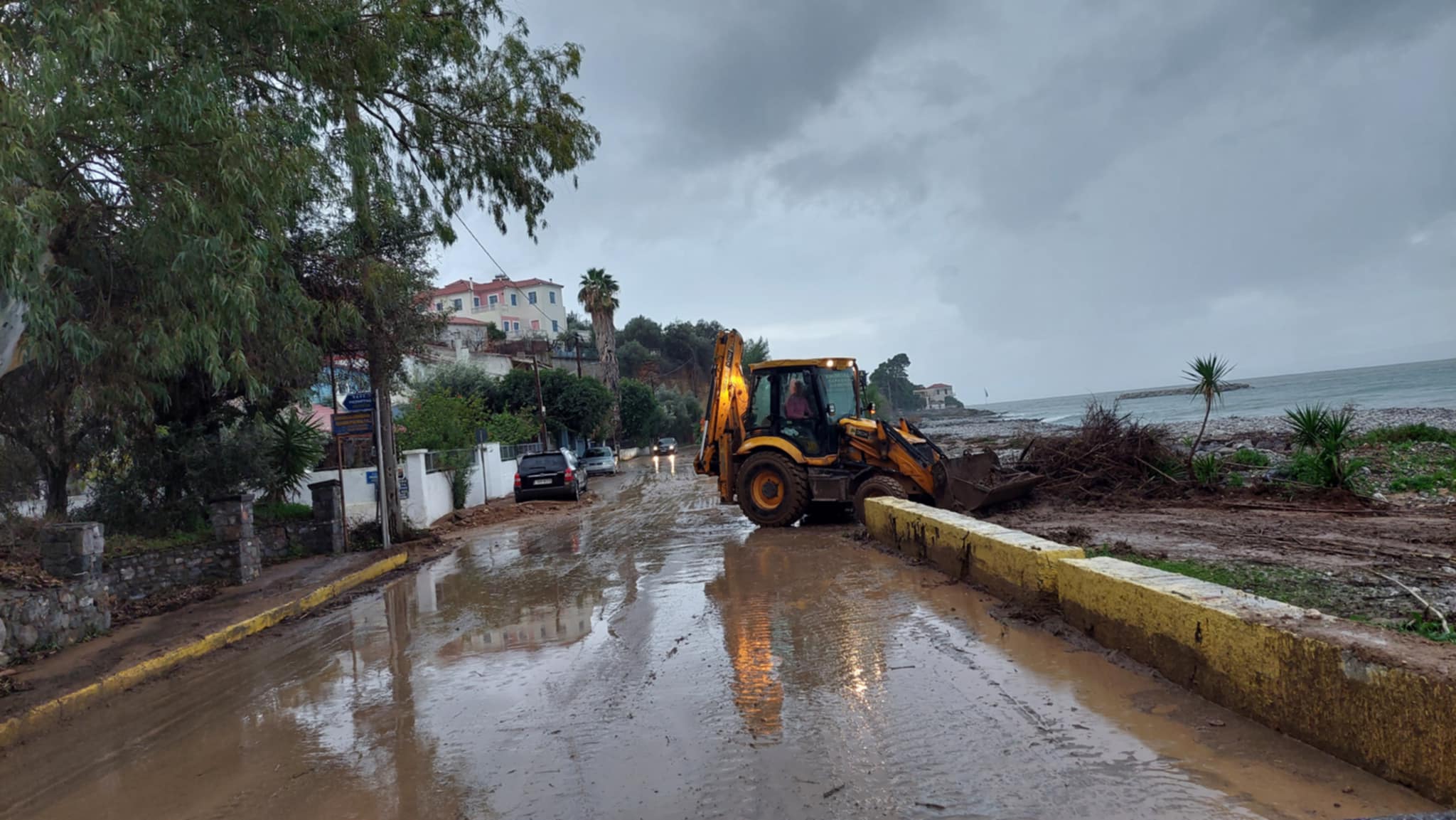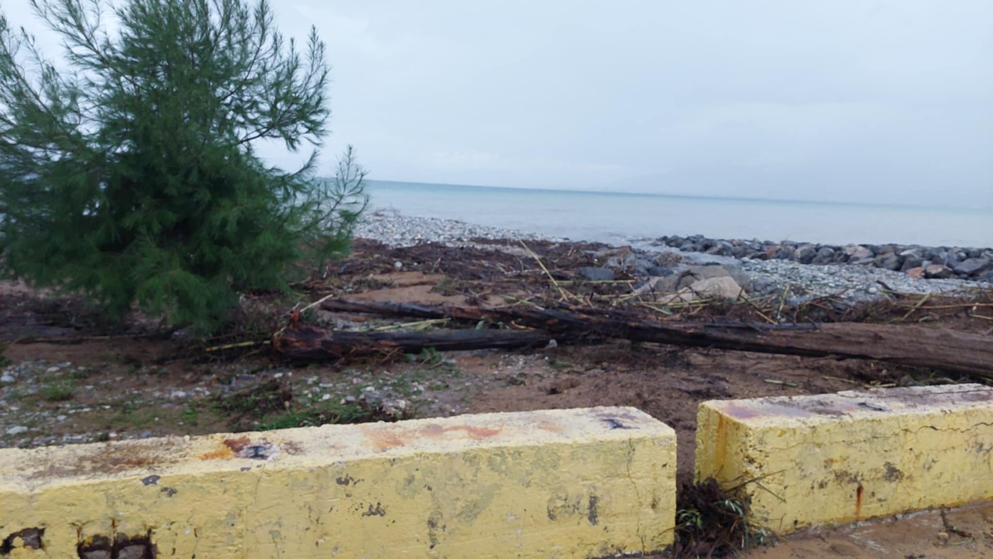 Λόγω της διαρκούς και ισχυρής βροχόπτωσης μεγάλες ποσότητες νερού κατέβηκαν από ρέμα σε κοντινή απόσταση από το λιμανάκι του Κωνσταντινέα (οδός Πεζορτής) με αποτέλεσμα για ώρες να κλείσει ο παραλιακός δρόμος από φερτά υλικά.