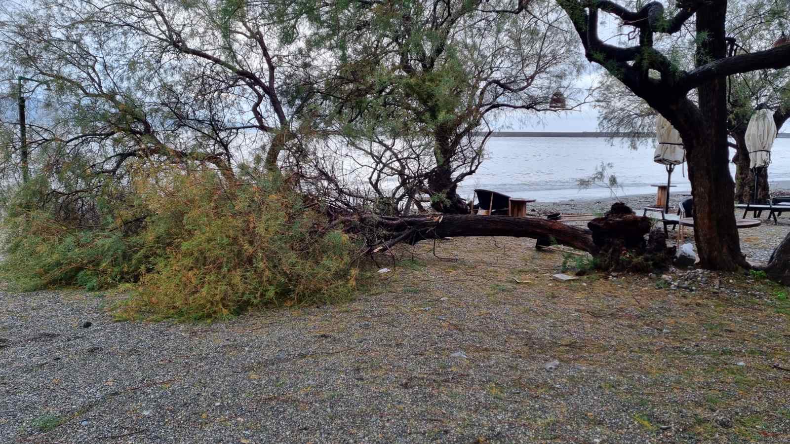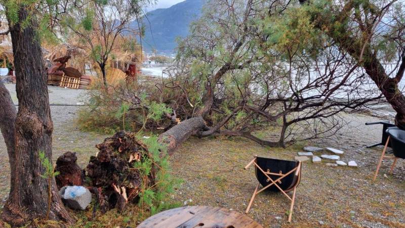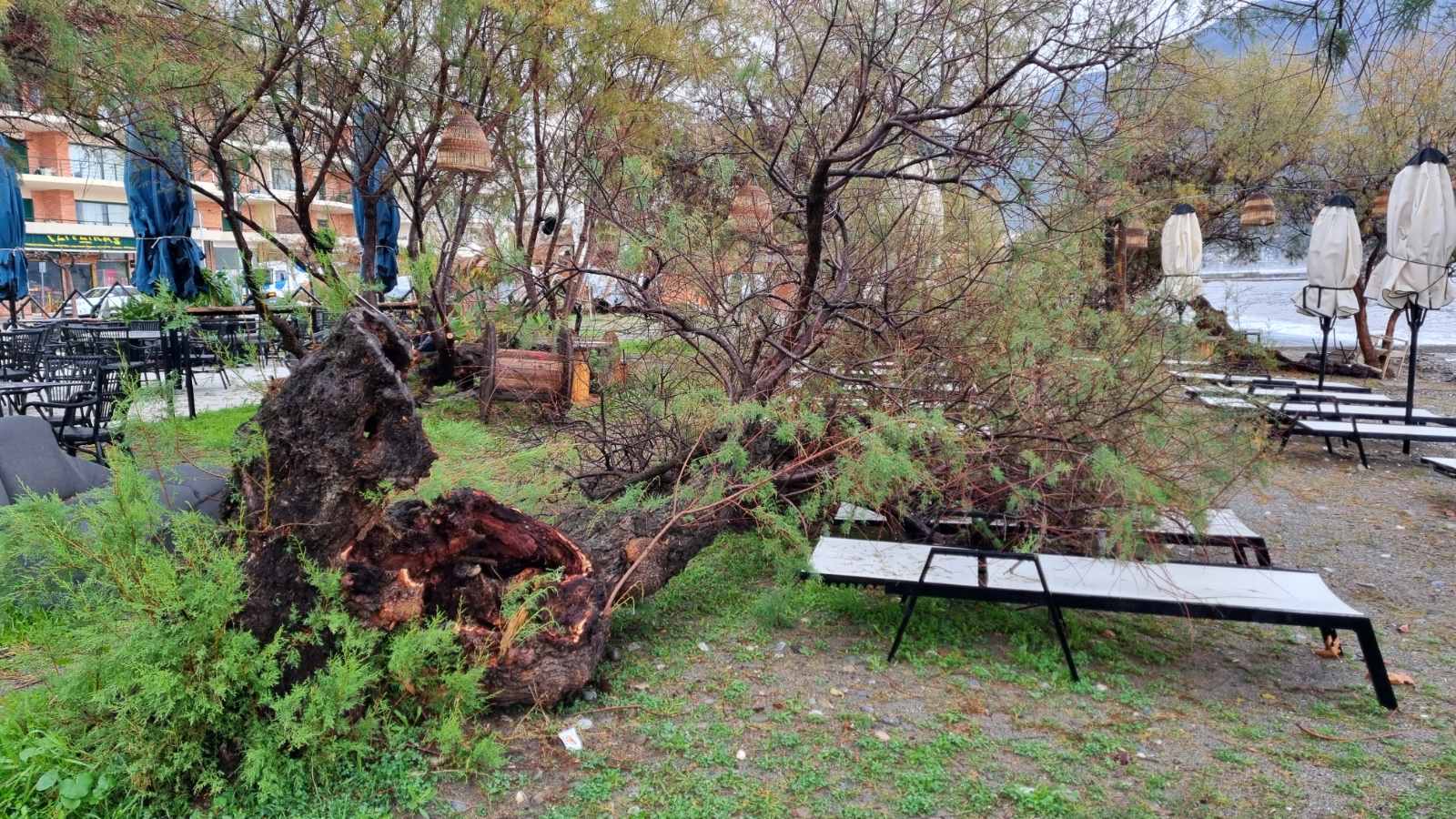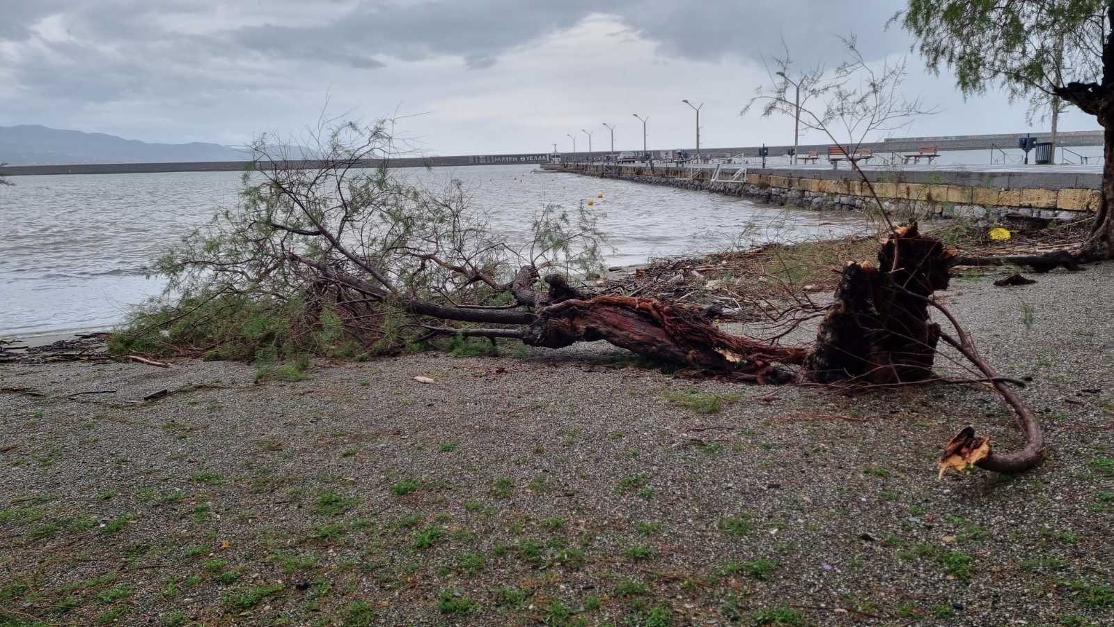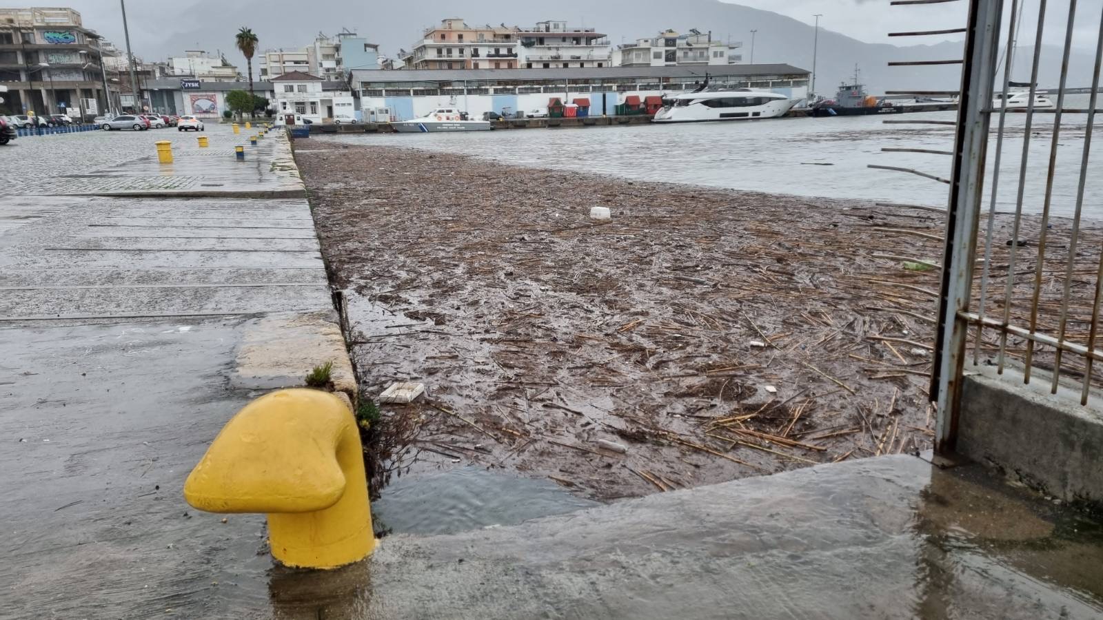 Δέντρα ξεριζώθηκαν, εξοπλισμοί καταστημάτων παρασύρθηκαν, ενώ αρκετές βάρκες στο λιμάνι της Καλαμάτας έχουν βουλιάξει.