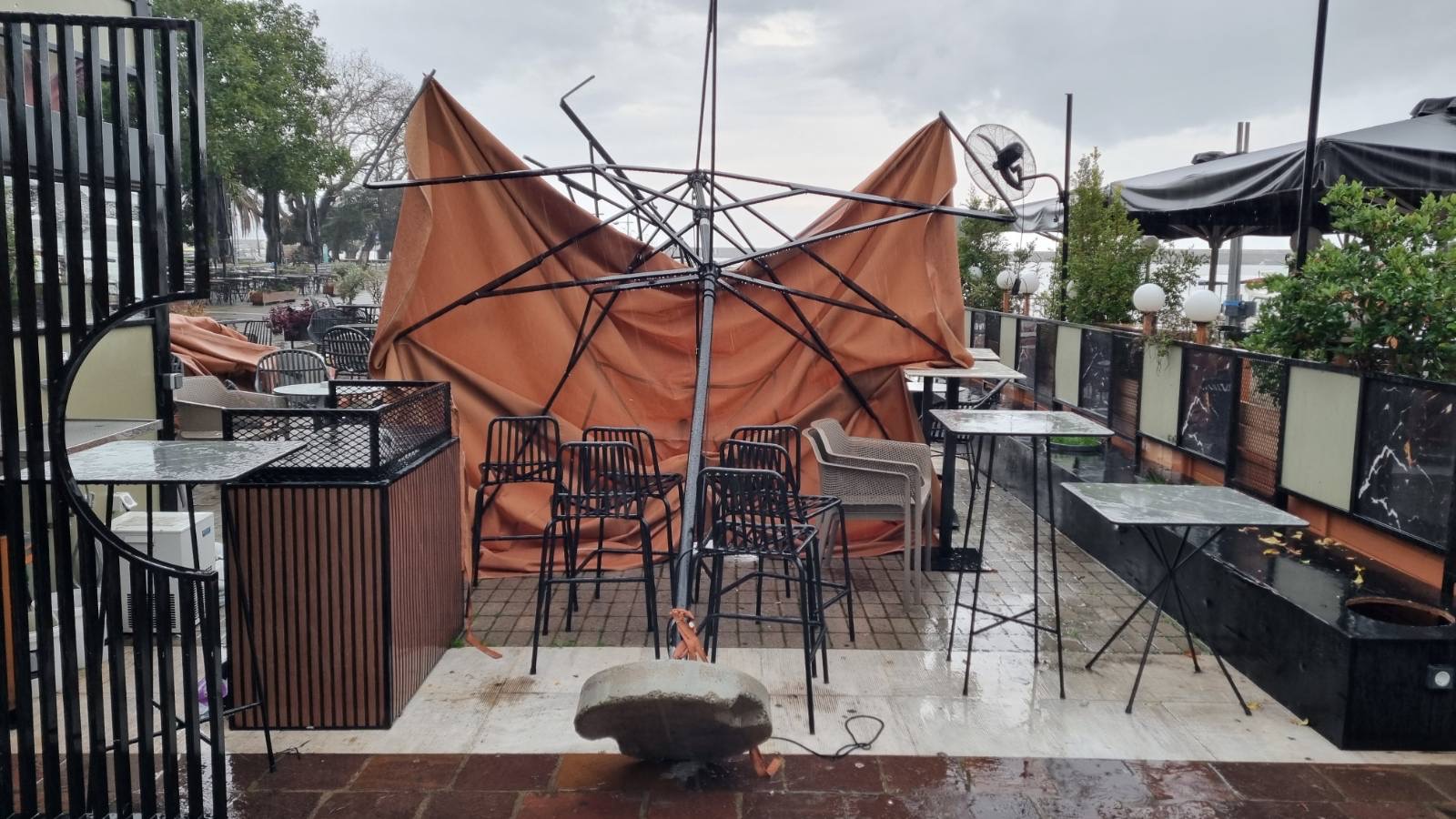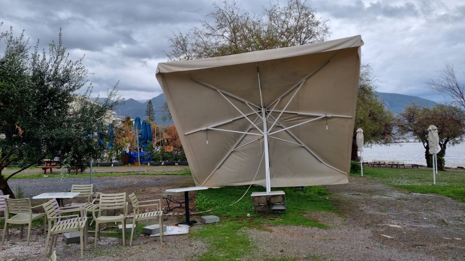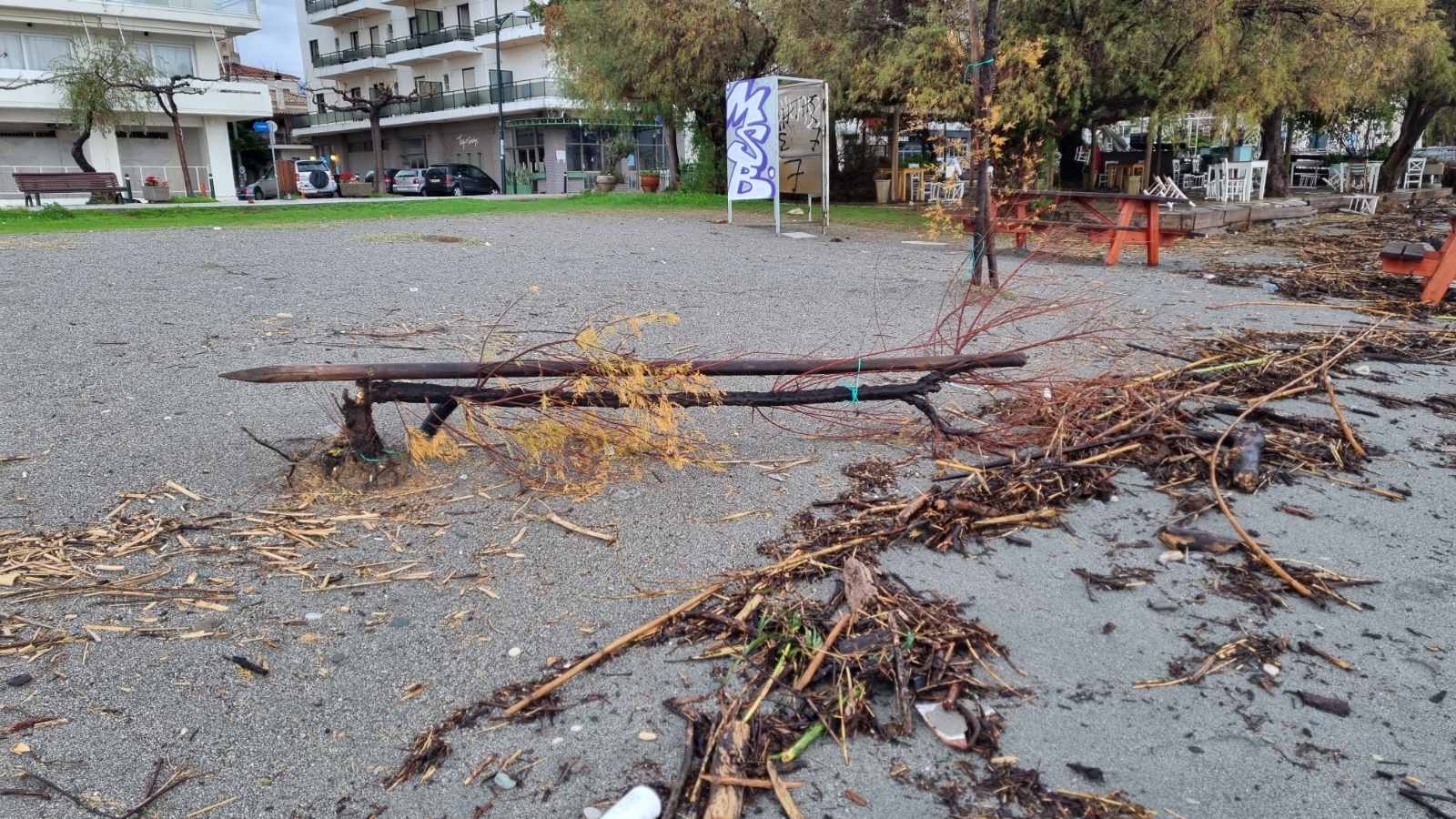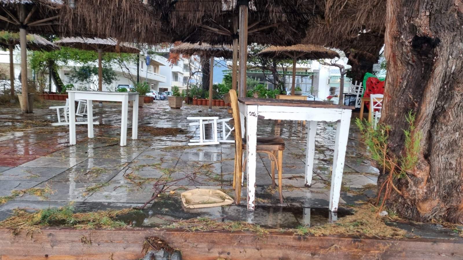 Δέντρα ξεριζώθηκαν, εξοπλισμοί καταστημάτων παρασύρθηκαν, ενώ αρκετές βάρκες στο λιμάνι της Καλαμάτας έχουν βουλιάξει.