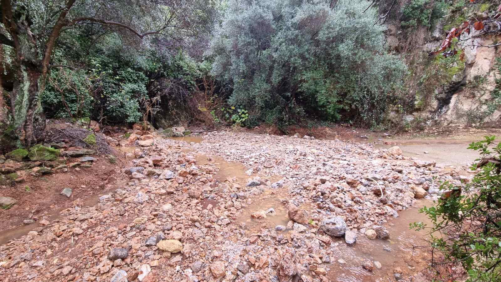 Ρέμα κατέβασε μεγάλο όγκο νερού και μαζί πέτρες και διάφορα φερτά υλικά.