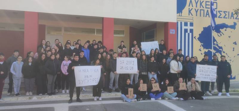 Ο πρόεδρος του 15μελούς μαθητικού συμβουλίου του ΓΕΛ Κυπαρισσίας Στάθης Κανελλόπουλος σημείωσε σχετικά: «Στο πλαίσιο της κινητοποίησης που γίνεται πανελλαδικώς, έτσι κι εμείς ως Γενικό Λύκειο Κυπαρισσίας αποφασίσαμε να βγούμε στο προαύλιο με δική μας πρωτοβουλία, με πανό, να φωνάξουμε κάποια συνθήματα για τη δικαίωση των νεκρών στα Τέμπη».