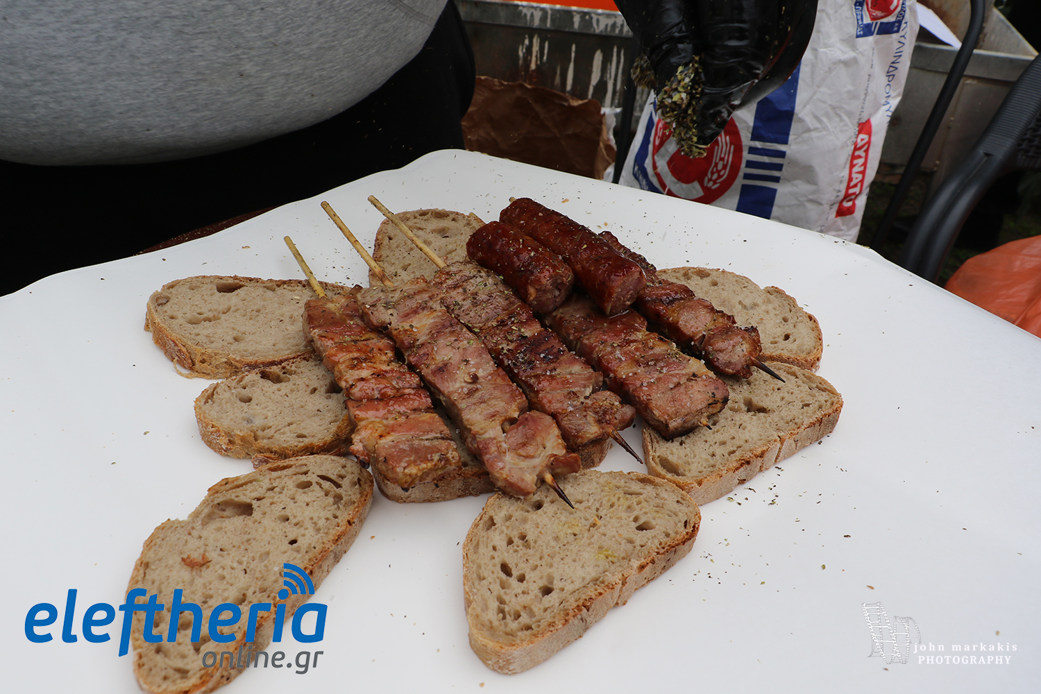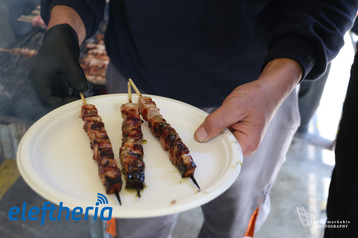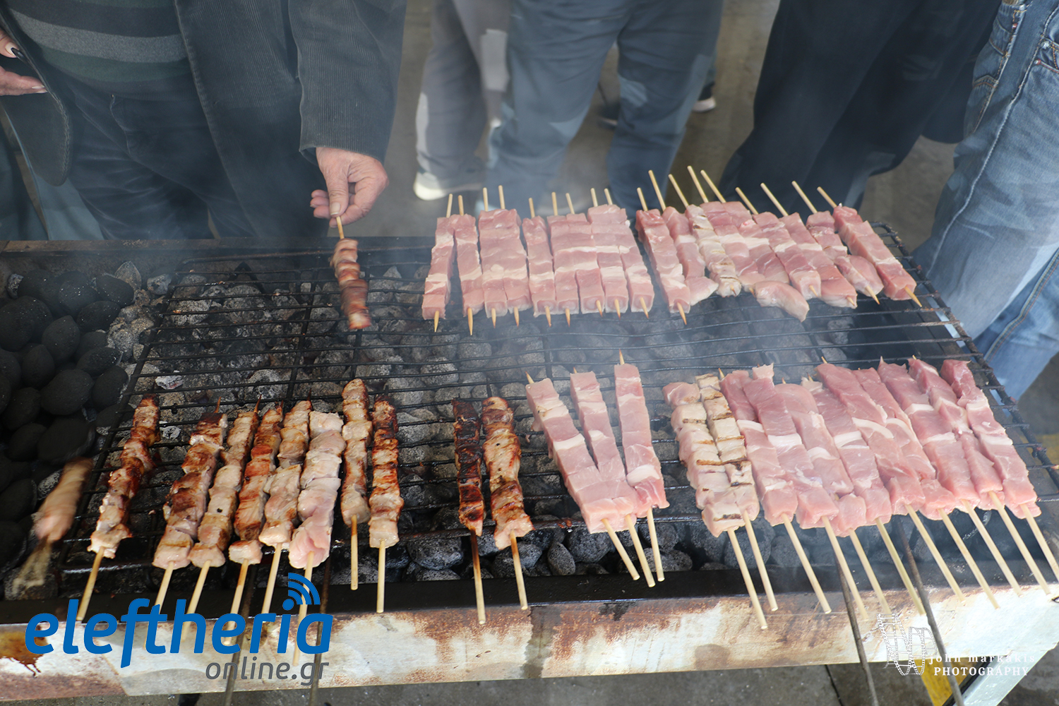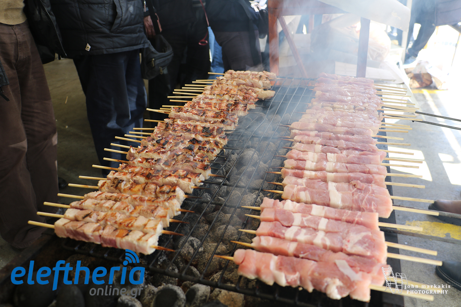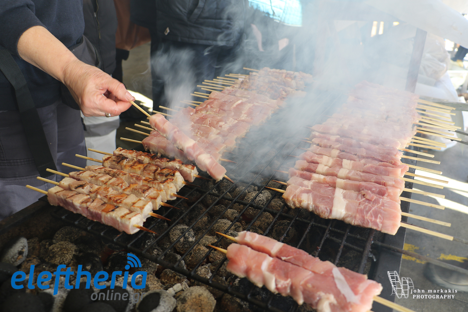 Την τιμητική τους, όπως κάθε χρόνο, είχαν τα σουβλάκια, τα λουκάνικα και το παραδοσιακό παστό, ανάβοντας υπαίθριες ψησταριές σε καταστήματα, επιχειρήσεις και κατοικίες.