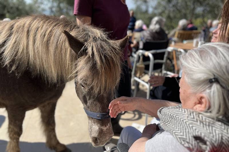 Στο πλαίσιο της επίσκεψης, οι ένοικοι του “Παπαδοπούλειου” συμμετείχαν σε μια ομαδική συνεδρία ιπποκομίας, κατά την οποία είχαν την ευκαιρία να αλληλεπιδράσουν με τα άλογα σε ένα ήρεμο και υποστηρικτικό περιβάλλον. Η ιπποκομία, που περιλαμβάνει τη φροντίδα και την καθοδήγηση του αλόγου χωρίς να απαιτείται ιππασία, επιτρέπει στους συμμετέχοντες να έρθουν σε επαφή με τα άλογα με διάφορους τρόπους, όπως το άγγιγμα, το βούρτσισμα και η επικοινωνία με τη συνοδεία εκπαιδευτή. Αυτή η διαδικασία ενισχύει την αυτοεκτίμηση και ενθαρρύνει την ανάπτυξη συναισθηματικής σύνδεσης.