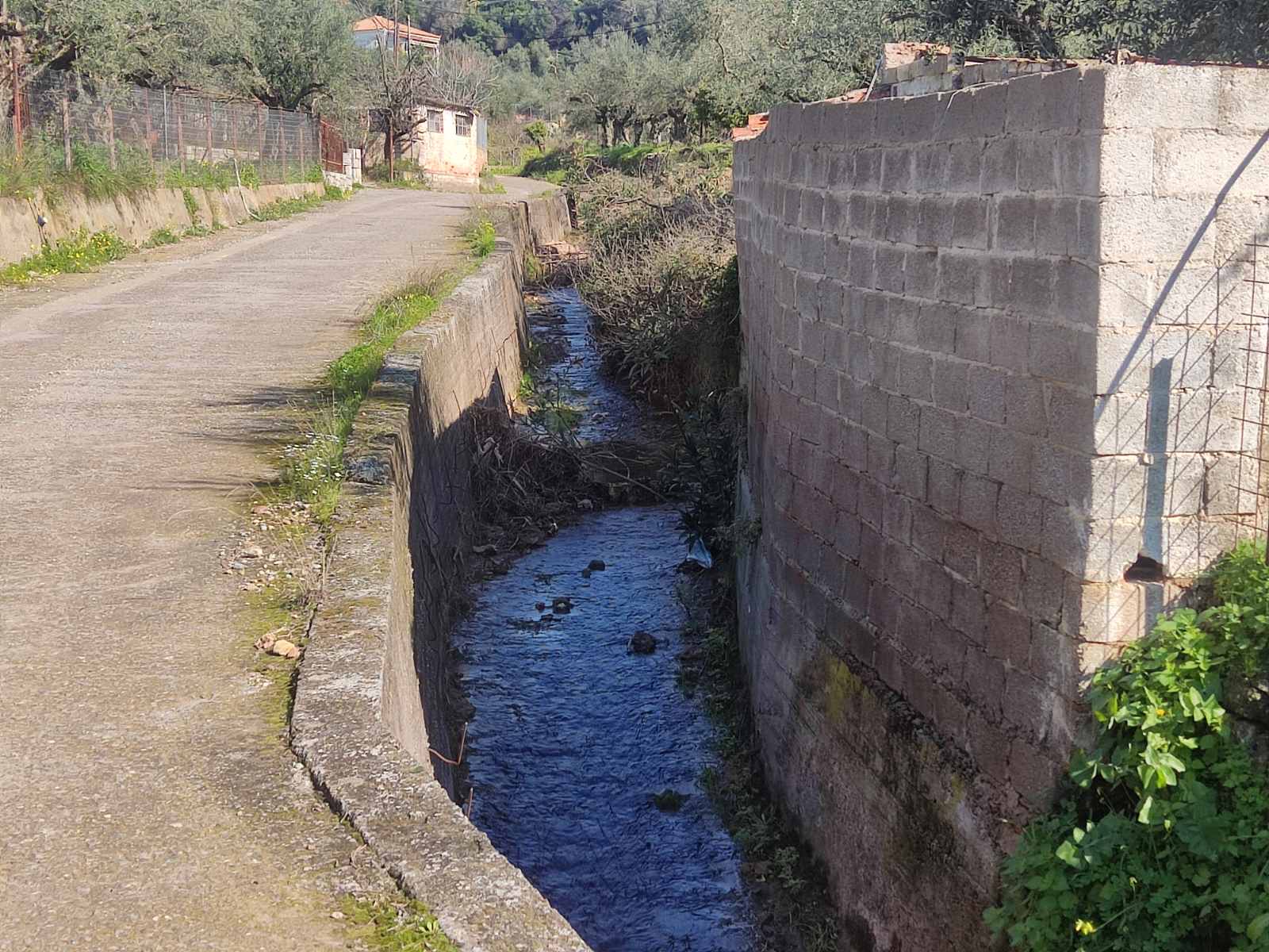 Λίγο πιο κάτω, η κοίτη του ρέματος στενεύει αρκετά, καθώς ένα μέρος της φαίνεται να έχει καλυφθεί από πέτρινο τοίχο που προέρχεται από γειτονικό κτίσμα.