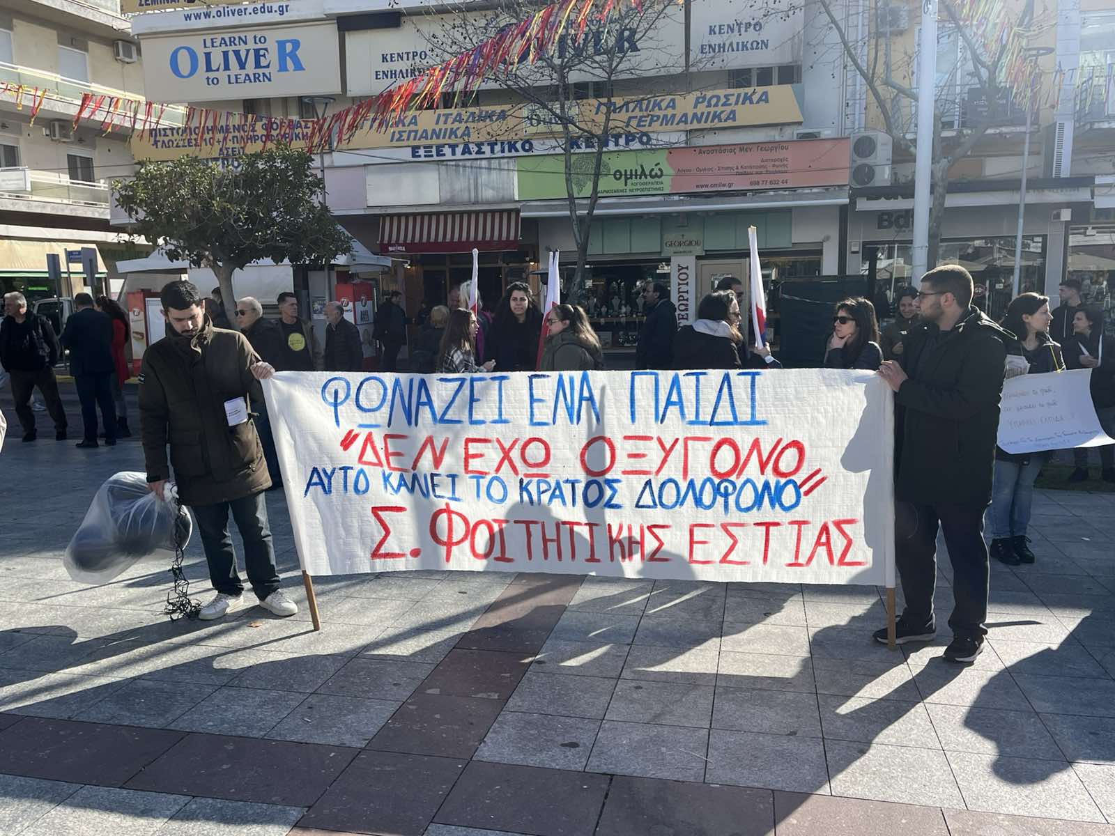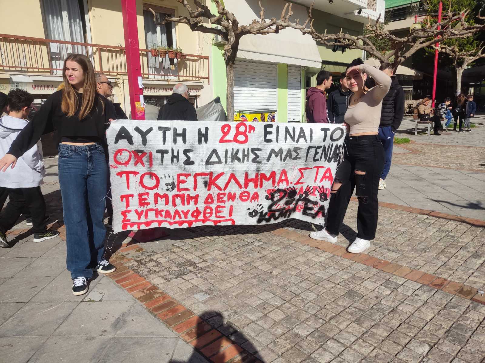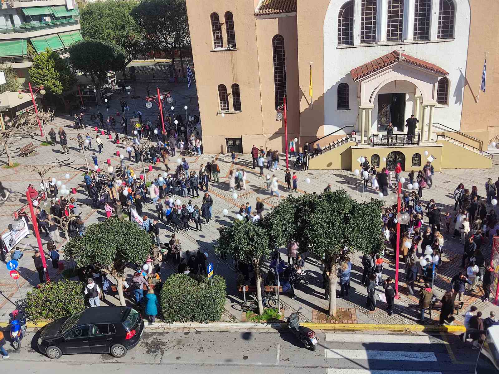 Ηδη αρκετός κόσμος έχει συγκεντρωθεί στην κεντρική πλατεία από τις 9.30 π.μ., με μικρούς και μεγάλους να καταφθάνουν από διάφορα σημεία της πόλης.