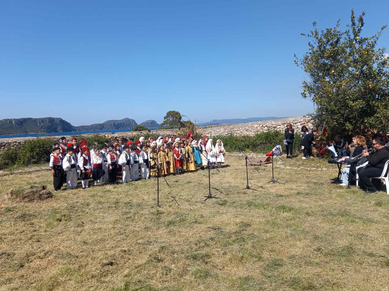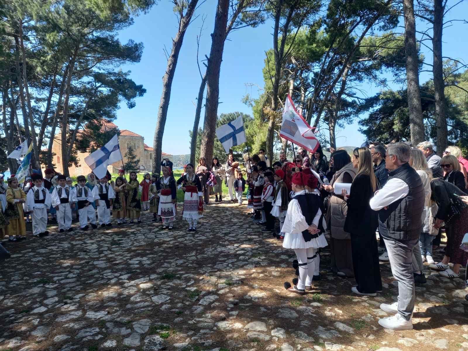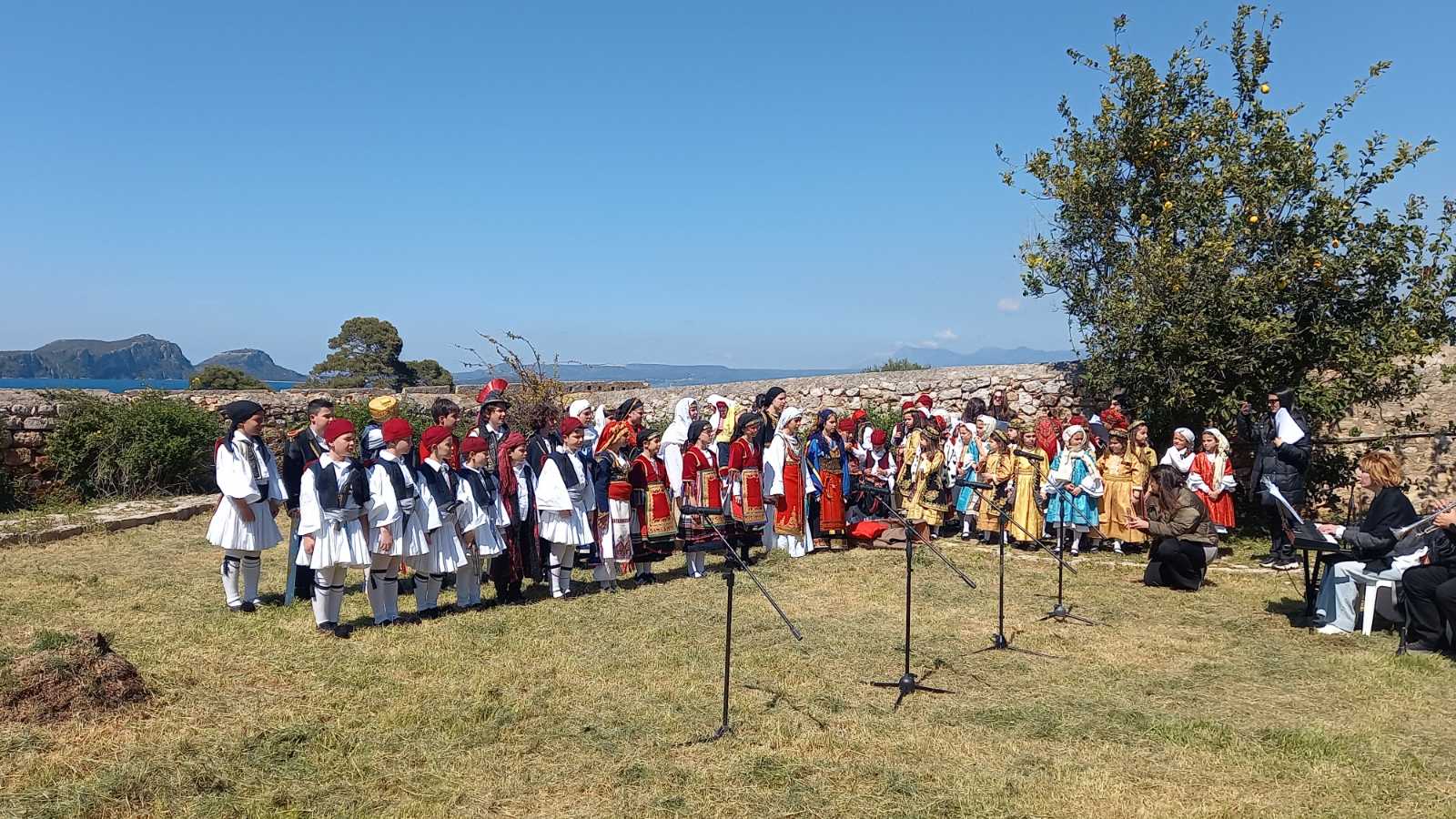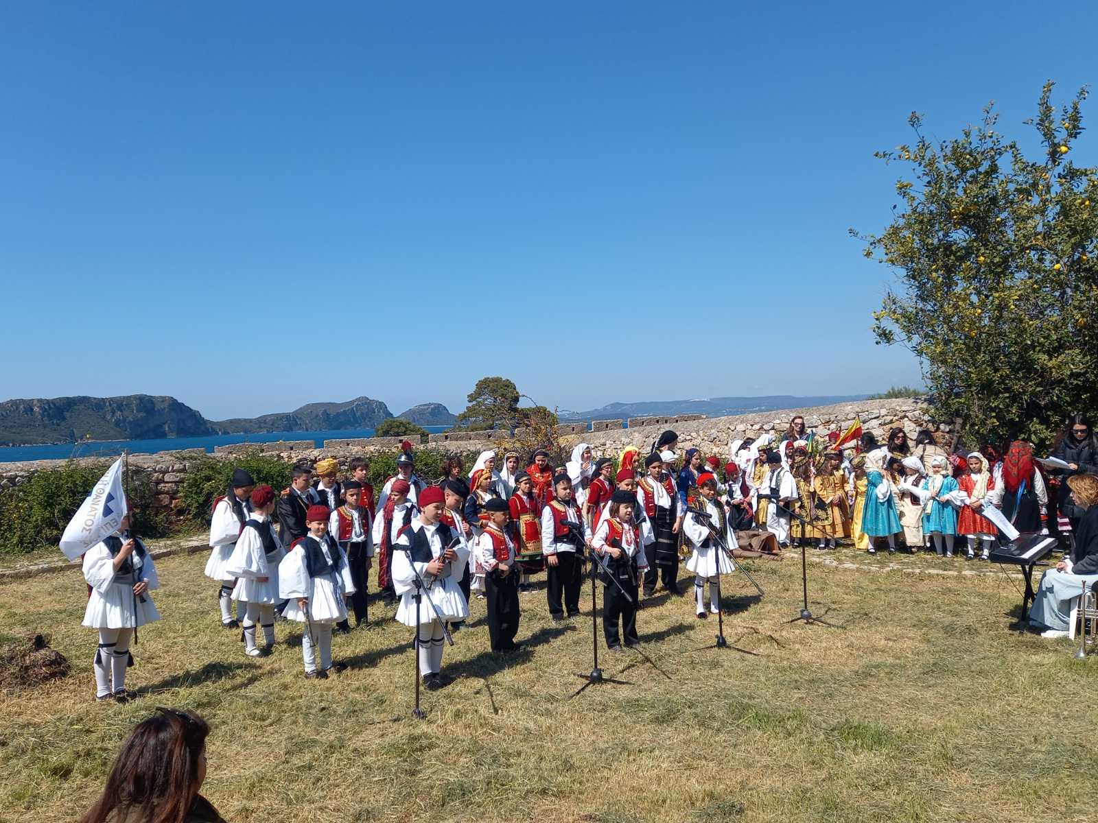 Οι μαθητές, που συνοδευόντουσαν από 13 εκπαιδευτικούς του σχολείου και πολλούς γονείς, είπαν τραγούδια για την επέτειο της 25ης Μαρτίου, απήγγειλαν ποιήματα για τον αγώνα των Ελλήνων, συμμετείχαν σε δρώμενο για την πολιορκία του Νιόκαστρου από τους Έλληνες και την παράδοσή του και ολοκλήρωσαν την όμορφη γιορτή τους με δρώμενο-αναπαράσταση της Ναυμαχίας του Ναβαρίνου!