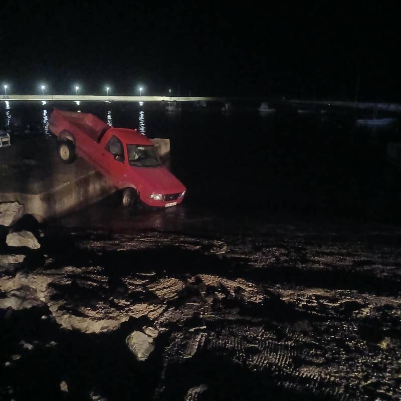 Το αυτοκίνητο κινούμενο στη προβλήτα του λιμανιού έπεσε στο τέρμα της εκεί που αρχίζει η γλίστρα.