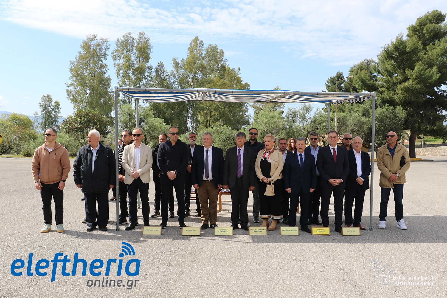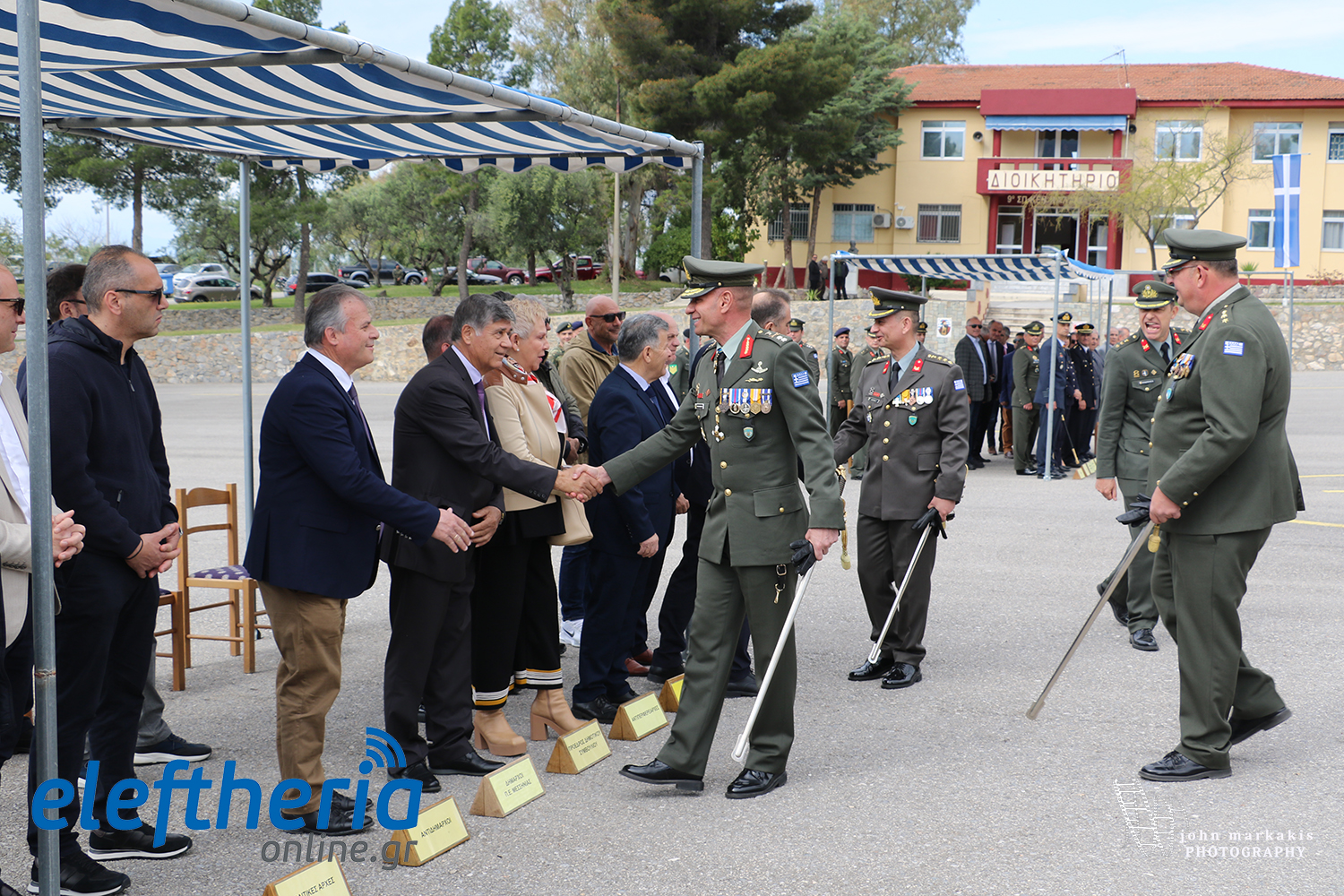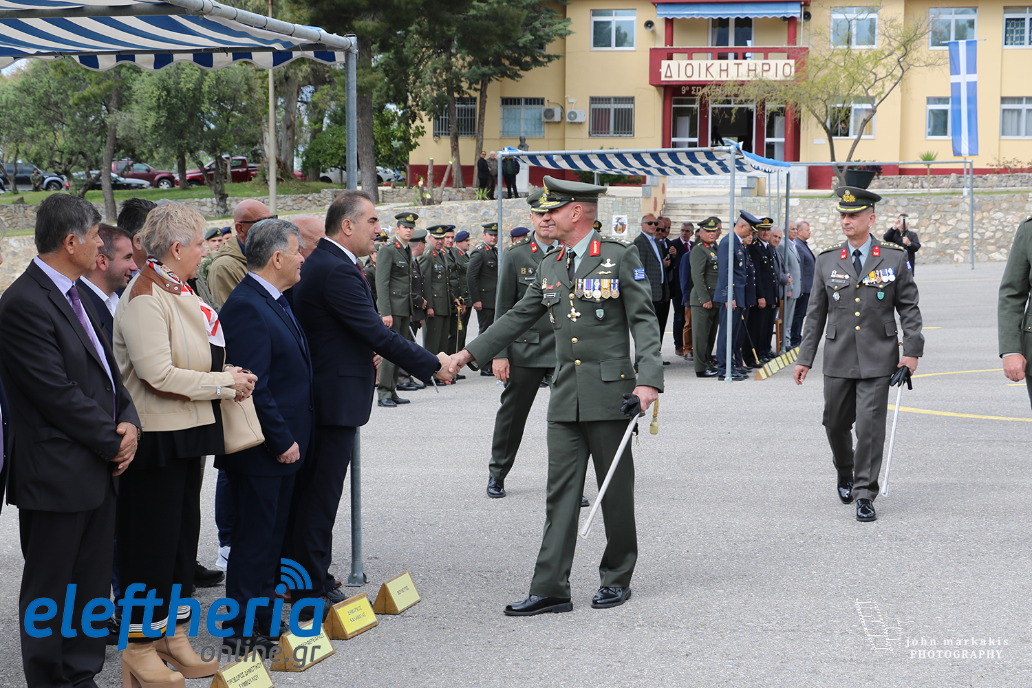 Στην τελετή στο στρατόπεδο “Παπαφλέσσα” παρέστησαν οι αντιπεριφερειάρχες Στάθης Αναστασόπουλος και Μαρία Οικονομάκου, οι δήμαρχοι Καλαμάτας Θανάσης Βασιλόπουλος και Πύλου – Νέστορος Παναγιώτης Καρβέλας, ο πρόεδρος του δημοτικού συμβουλίου Καλαμάτας Αναστάσιος Ηλιόπουλος, δημοτικοί σύμβουλοι και εκπρόσωποι της Αεροπορίας, των Σωμάτων Ασφαλείας και των Ενώσεων Αποστράτων και Εφέδρων Αξιωματικών Μεσσηνίας. Μετά το τέλος της τελετής ακολούθησε μικρή δεξίωση στην αίθουσα συγκεντρώσεων, στο διοικητήριο του Συντάγματος.