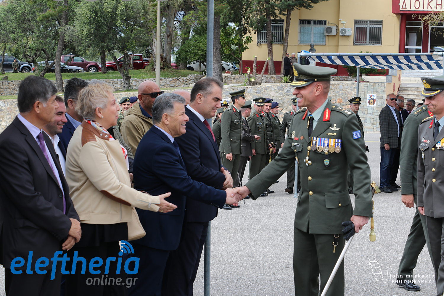 Ο συνταγματάρχης Γεώργιος Χαρίτος αναλαμβάνοντας καθήκοντα στην ημερήσια διαταγή ανέφερε πως υπό τις διαταγές του θα τηρείται πιστά ο στρατιωτικός κανονισμός και νόμος από όλους, χωρίς καμία εξαίρεση, ενώ ο μέχρι πρότινος διοικητής αντισυνταγματάρχης Δημήτριος Λιάκουρης δήλωσε υπερήφανος που υπηρέτησε ως διοικητής στο ιστορικό 9ο Σύνταγμα Πεζικού και επισήμανε πως θα κρατήσει στη μνήμη του τις σπουδαίες αναμνήσεις που είχε.