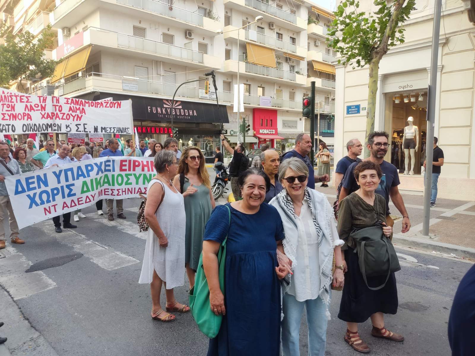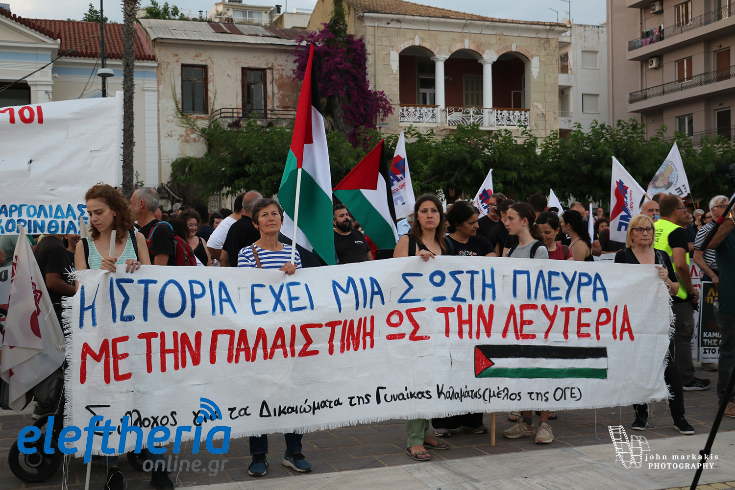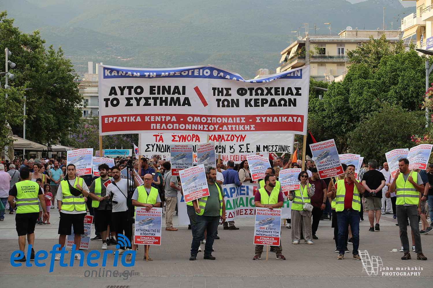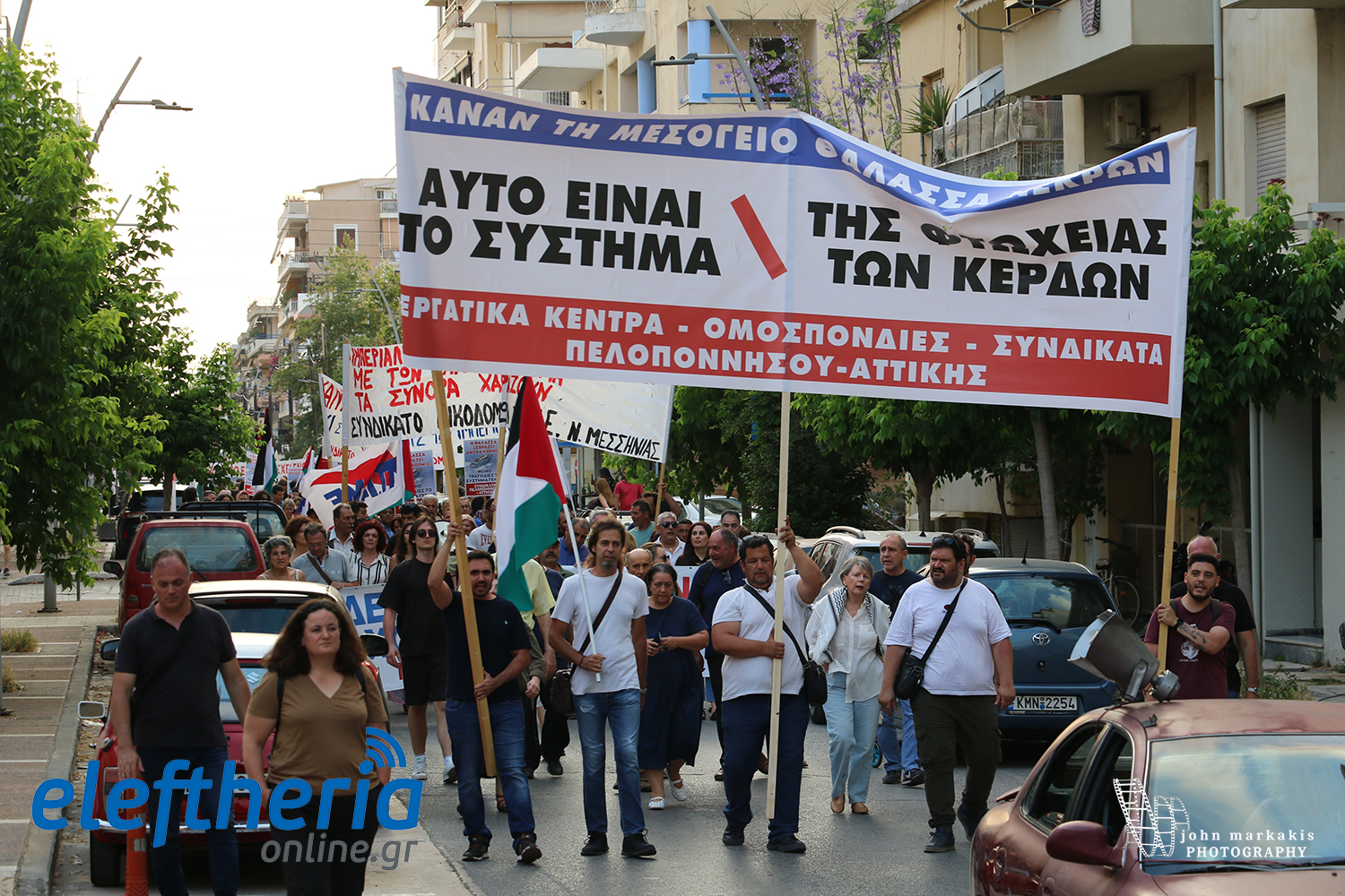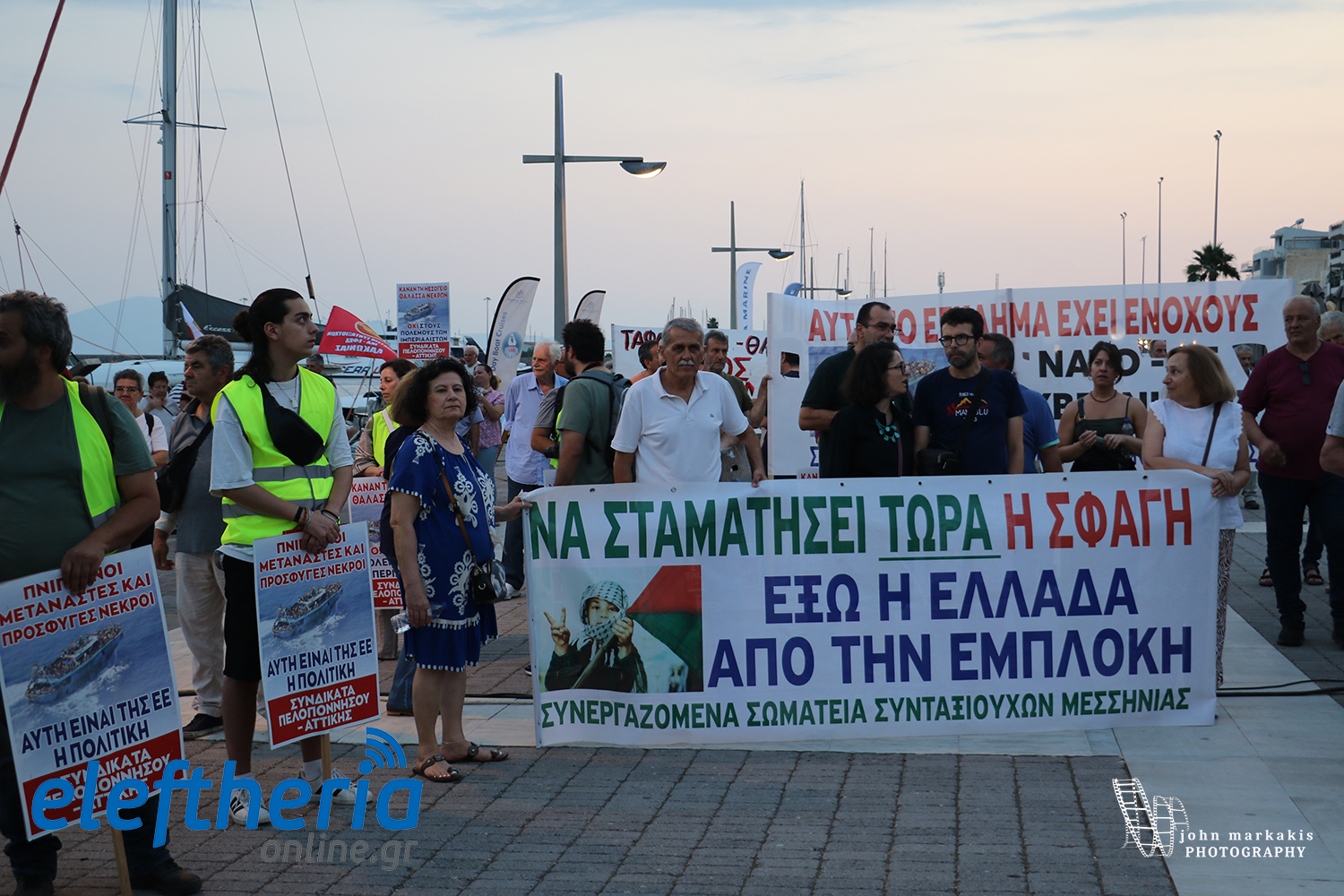 Ο πρόεδρος του Συνδικάτου Οικοδόμων και Συναφών Επαγγελμάτων Μεσσηνίας Παναγιώτης Καράμπελας παρατήρησε ότι “η συγκέντρωση στέλνει μήνυμα στην κυβέρνηση και σε όλες τις κυβερνήσεις της Ε.Ε. που έχουν προτεραιότητα τα κέρδη των λίγων «σκάστε τώρα, γέμισαν οι κάσες με νεκρούς». Μίλησε για βρώμικη και απάνθρωπη πολιτική του κέρδους κι επεσήμανε πως “το 2024 σημειώθηκαν οι περισσότερες ένοπλες συγκρούσεις στον πλανήτη από το 1946”. Εξαπέλυσε επίθεση στο “κράτος - δολοφόνο του Ισραήλ που το στηρίζουν οι ΗΠΑ και τα ευρωπαϊκά κράτη” και δήλωσε πως “είμαστε αλληλέγγυοι στον ηρωικό παλαιστινιακό λαό, είμαστε εδώ γιατί είμαστε άνθρωποι”.