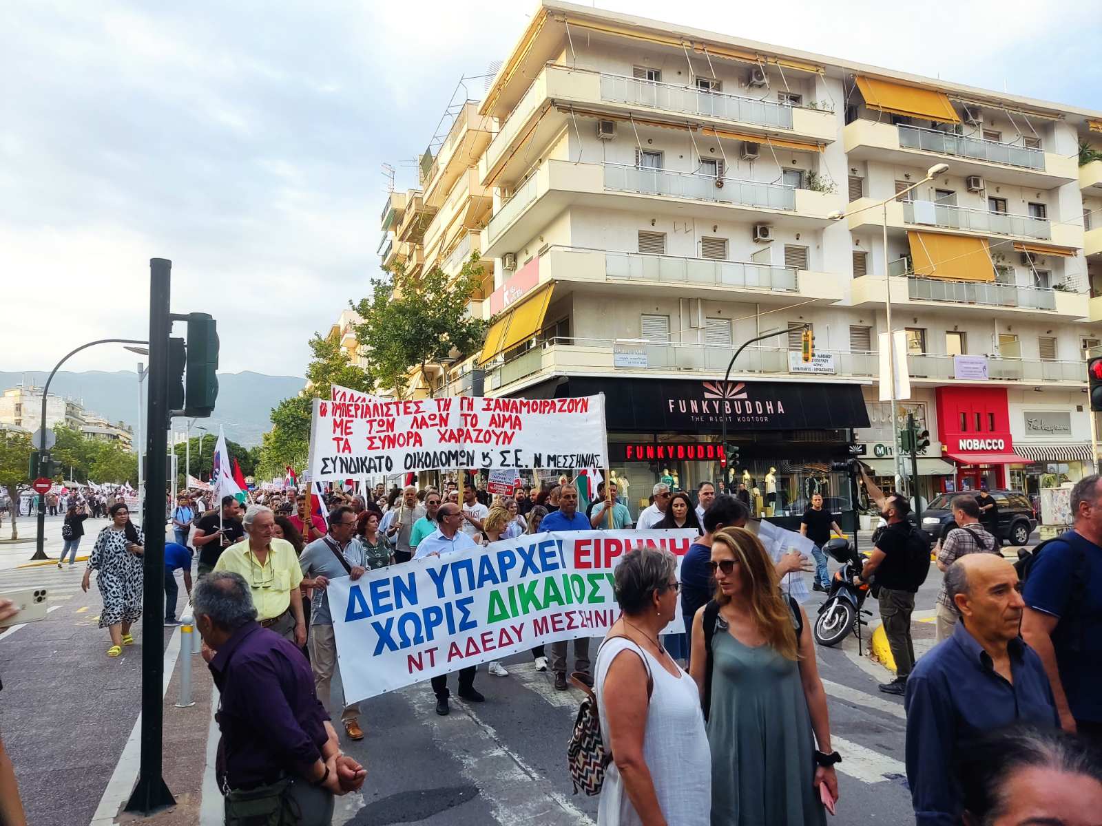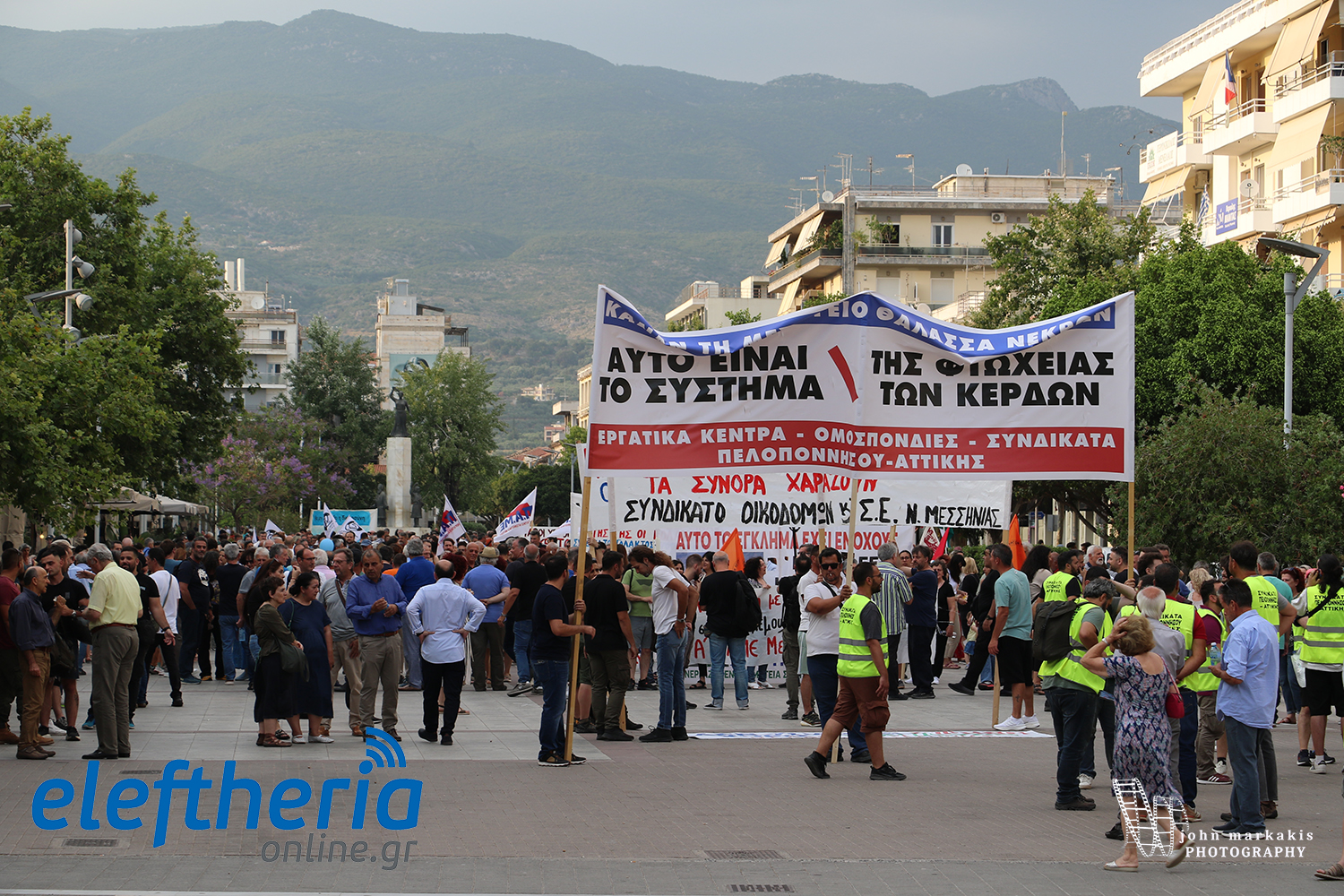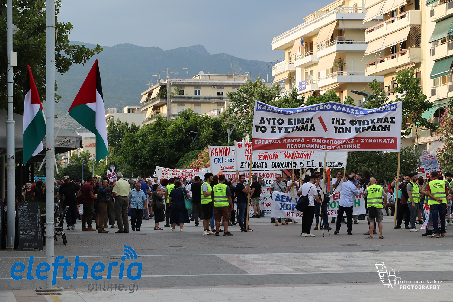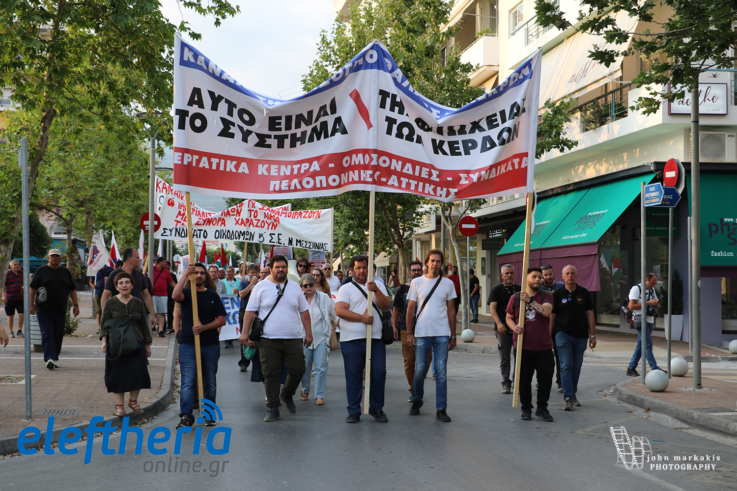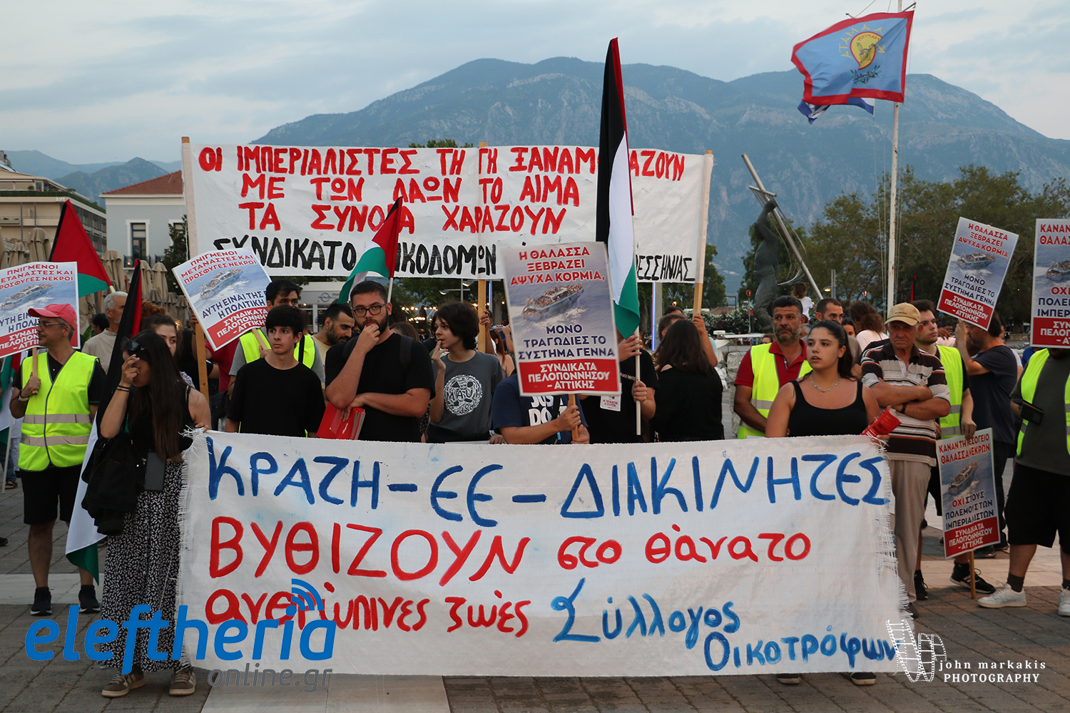 Ο πρόεδρος του Συνδικάτου Οικοδόμων και Συναφών Επαγγελμάτων Μεσσηνίας Παναγιώτης Καράμπελας παρατήρησε ότι “η συγκέντρωση στέλνει μήνυμα στην κυβέρνηση και σε όλες τις κυβερνήσεις της Ε.Ε. που έχουν προτεραιότητα τα κέρδη των λίγων «σκάστε τώρα, γέμισαν οι κάσες με νεκρούς». Μίλησε για βρώμικη και απάνθρωπη πολιτική του κέρδους κι επεσήμανε πως “το 2024 σημειώθηκαν οι περισσότερες ένοπλες συγκρούσεις στον πλανήτη από το 1946”. Εξαπέλυσε επίθεση στο “κράτος - δολοφόνο του Ισραήλ που το στηρίζουν οι ΗΠΑ και τα ευρωπαϊκά κράτη” και δήλωσε πως “είμαστε αλληλέγγυοι στον ηρωικό παλαιστινιακό λαό, είμαστε εδώ γιατί είμαστε άνθρωποι”.