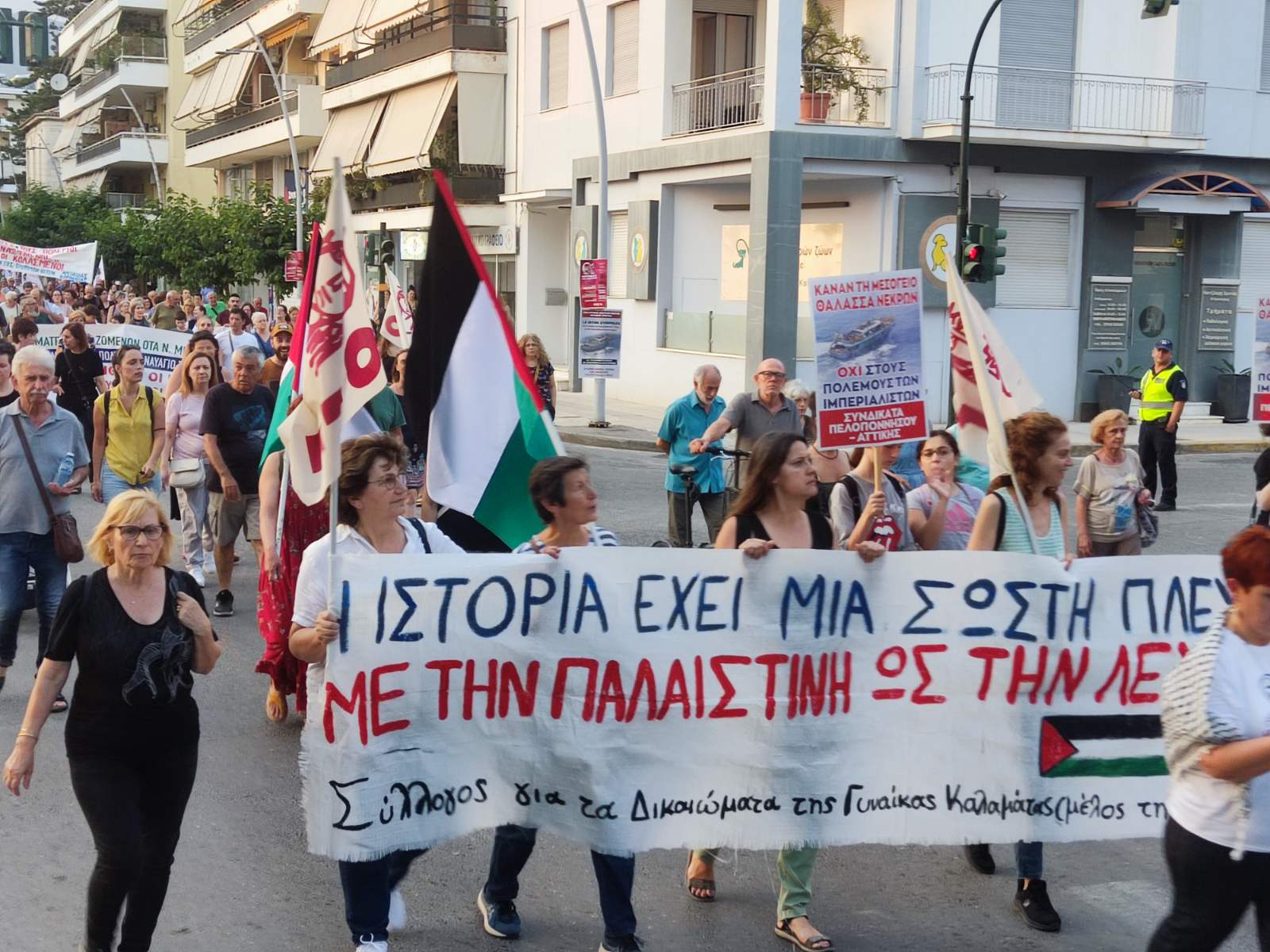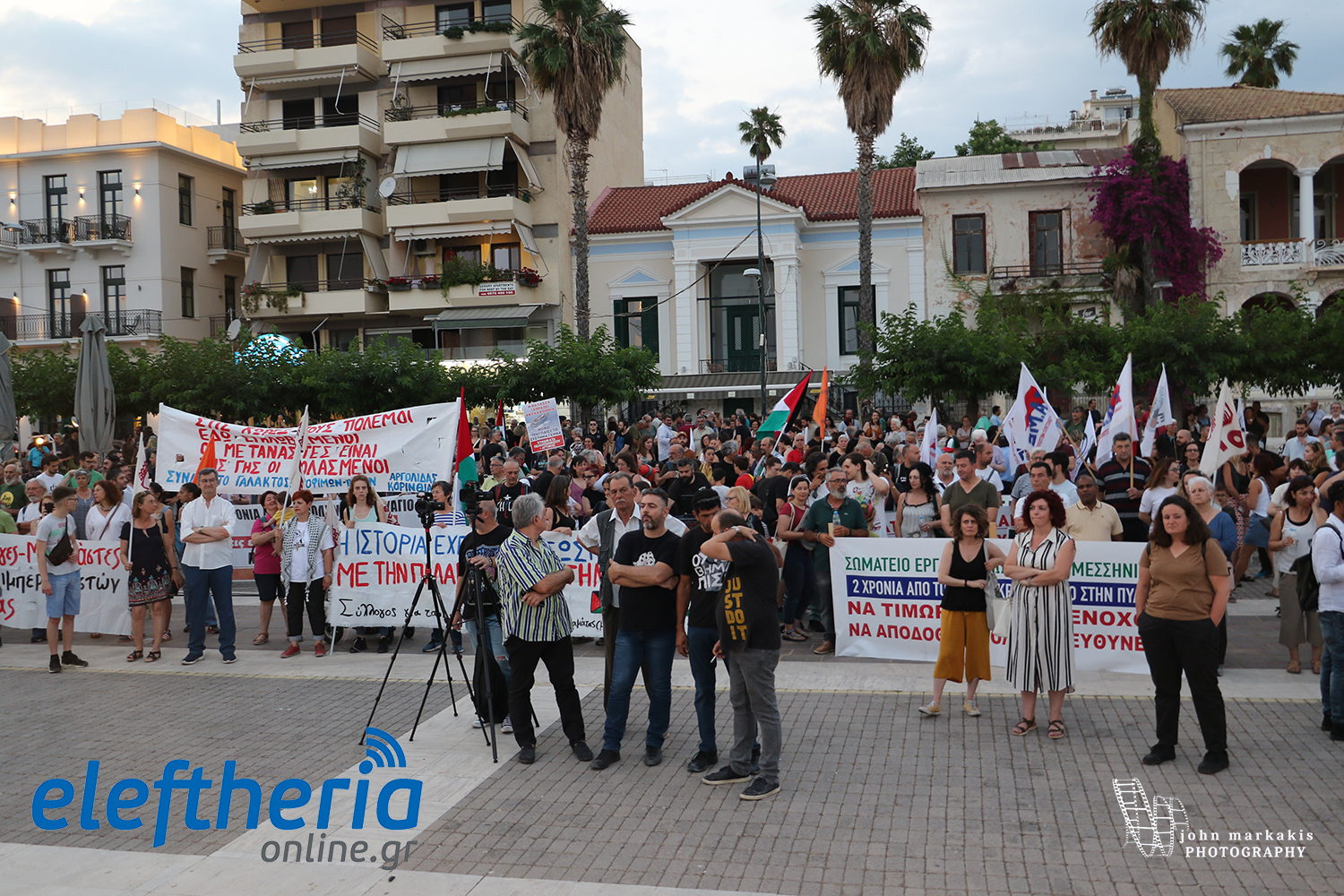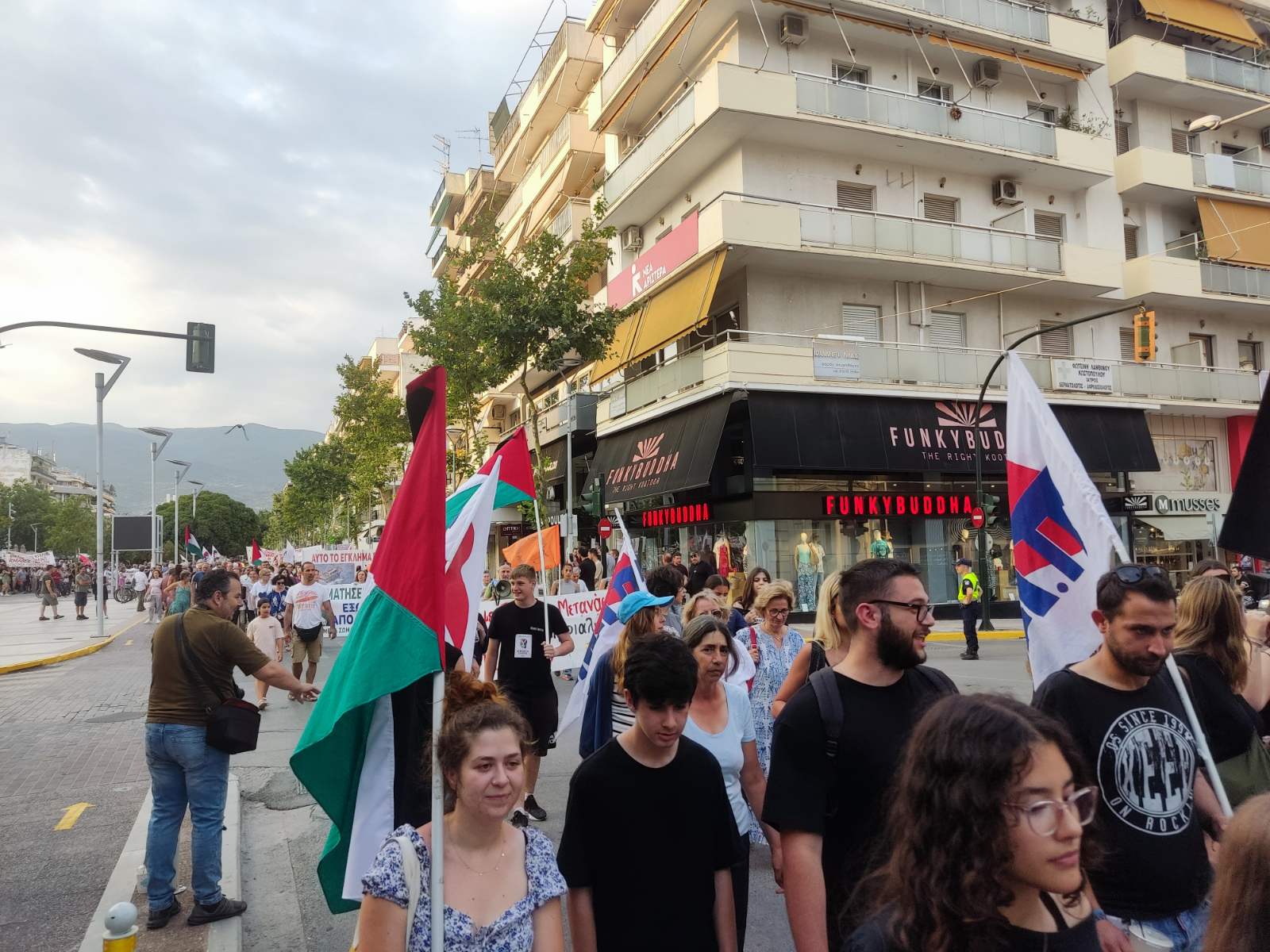 Οι διαδηλωτές επέκριναν δριμύτατα τις πολιτικές μετανάστευσης της Ευρωπαϊκής Ενωσης, που μετατρέπουν τη Μεσόγειο σε θάλασσα νεκρών προσφύγων και μεταναστών, εξαπέλυσαν επίθεση στο κράτος - δολοφόνο του Ισραήλ και στην στήριξή του από τις ΗΠΑ και την Ε.Ε. και ζήτησαν λευτεριά για την Παλαιστίνη.