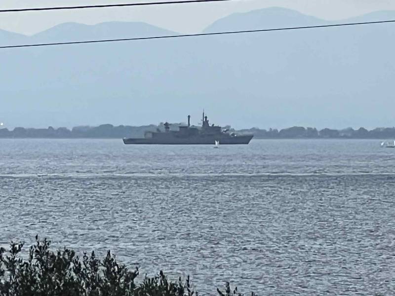 Το πολεμικό πλοίο συμμετέχει από χθες το πρωί σε στρατιωτική άσκηση σε διεθνή ύδατα και μετά το μεσημέρι βρέθηκε ανοιχτά της Καλαμάτας για ανεφοδιασμό.