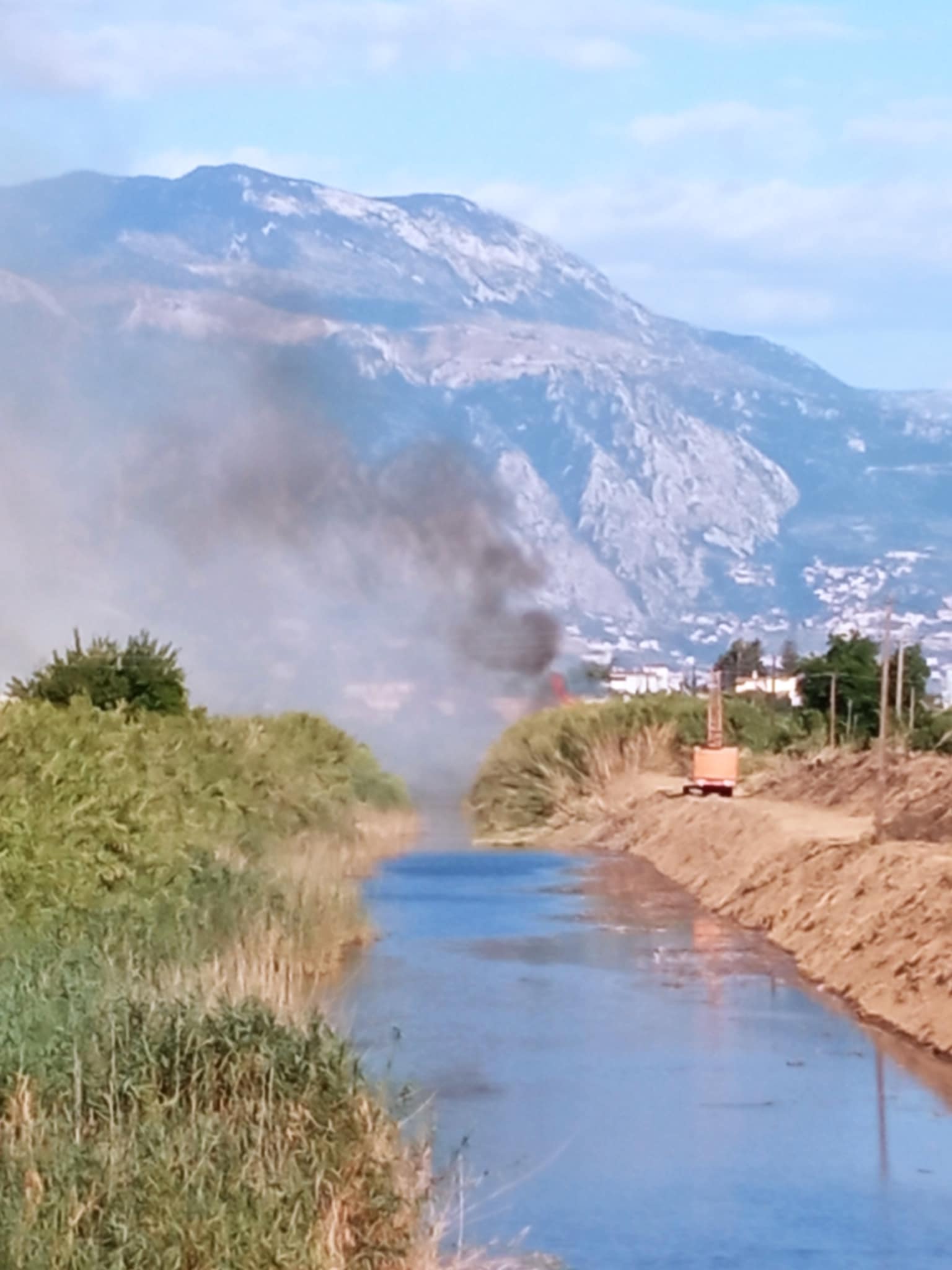 Στην επιχείρηση συνδράμουν τόσο εθελοντικές ομάδες, αλλά και υδροφόρες του δήμου, με σκοπό να τεθεί υπό έλεγχο η φωτιά που καίει καλάμια.