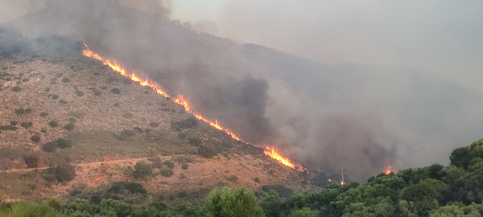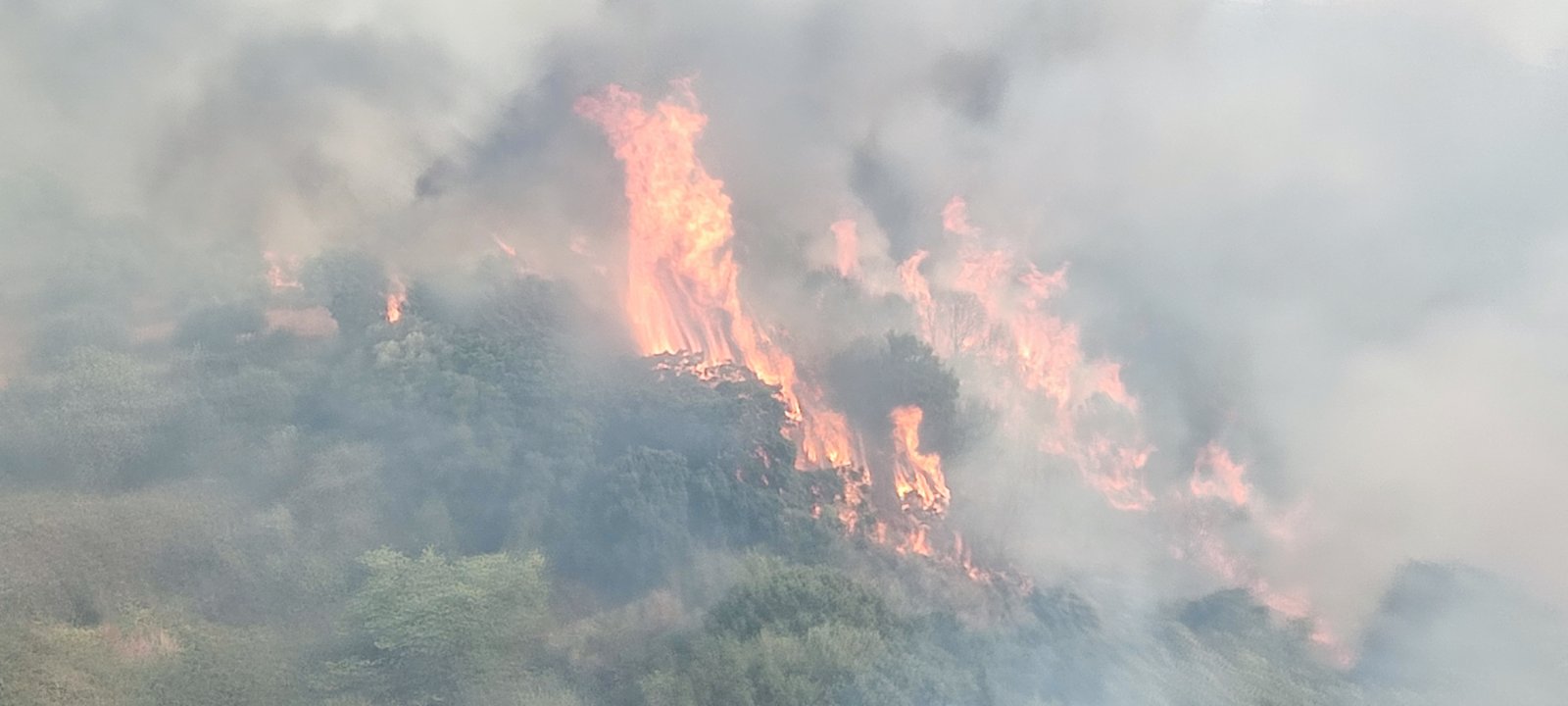 Παράλληλα με το μέτωπο που απείλησε την Πολυθέα η φωτιά είχε σχηματίσει ακόμη ένα τεράστιο μέτωπό από τους πρόποδες μέχρι την κορυφή του λόφου Πύλα έχοντας πάρει κατεύθυνση προς το χωριό Αετός για το οποίο ήχησε το 112 προκειμένου να απομακρυνθούν οι κάτοικοι.