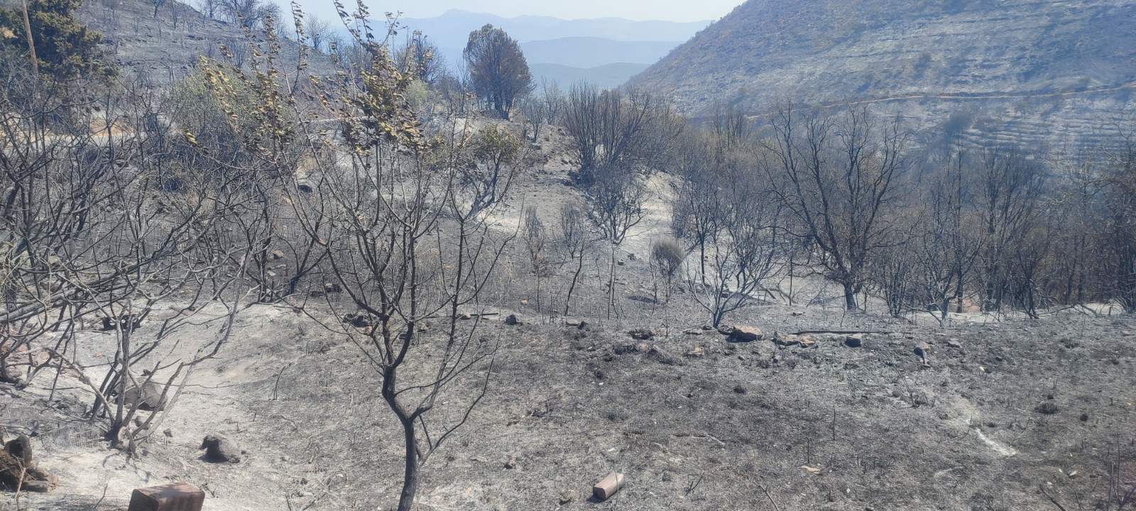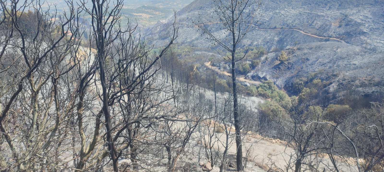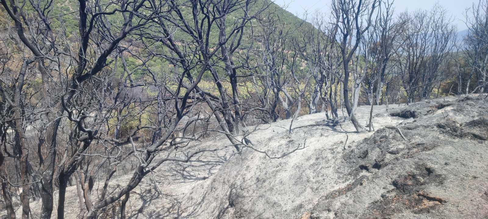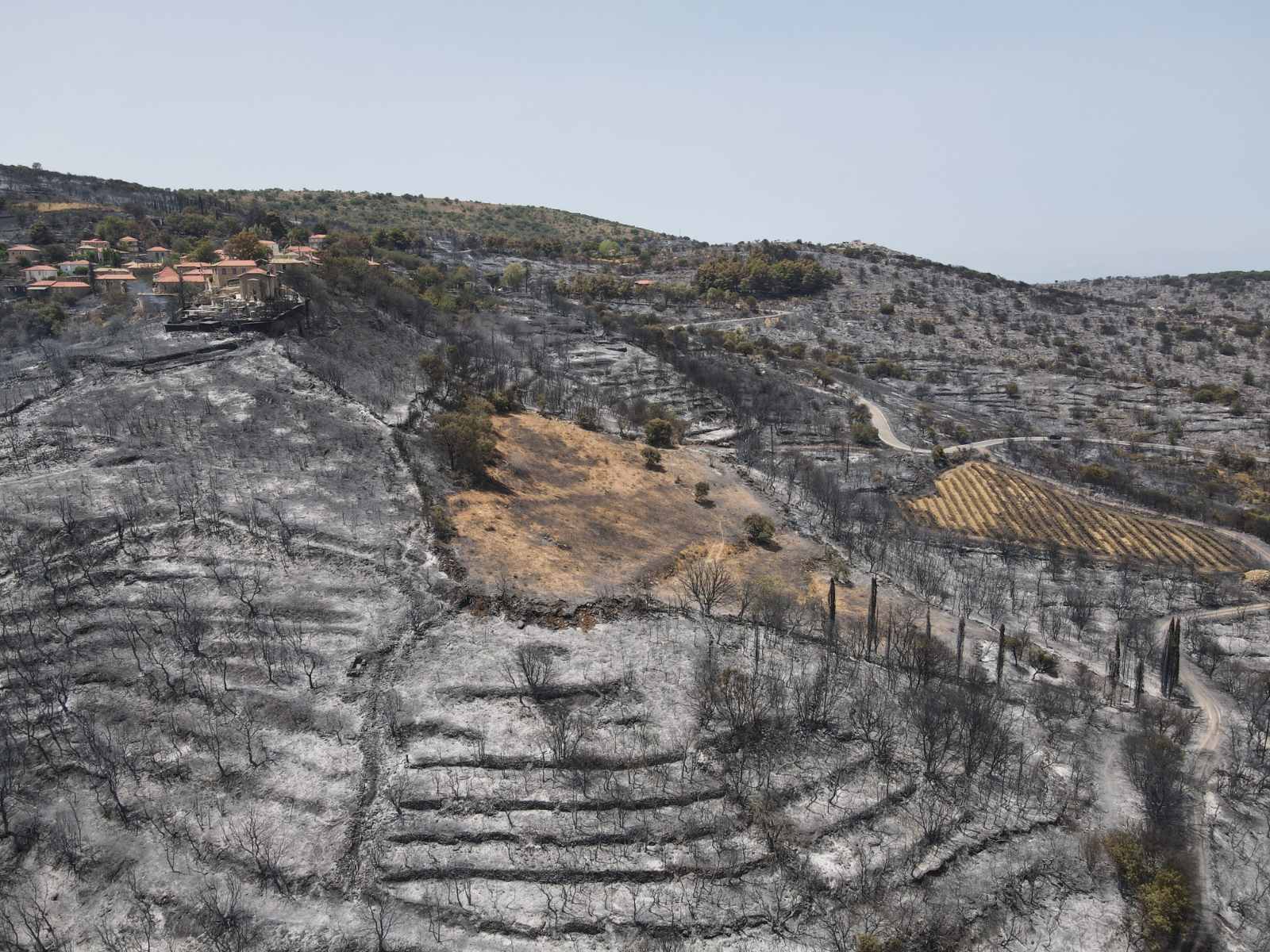 Χθες με τον καπνό να έχει καταλαγιάσει αποκαλύφθηκε και το μαύρο από τις τεράστιες καμένες εκτάσεις στη περιοχή, όπου πέρα από τις δασικές κάηκαν καλλιέργειες με ελιές, συκιές και αμπέλια με τους κατοίκους να μετρούν τις τεράστιες ζημιές μπροστά σε ένα δύσκολο μέλλον.