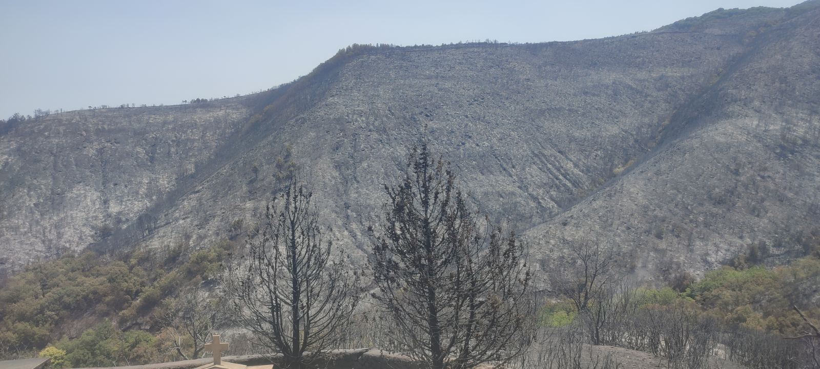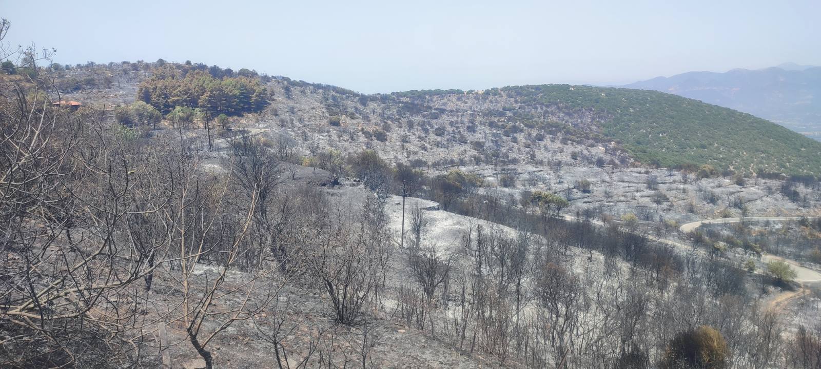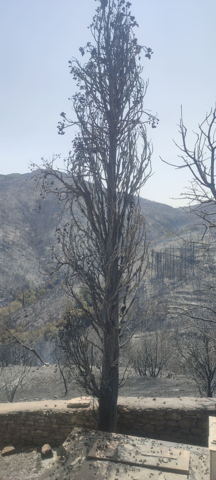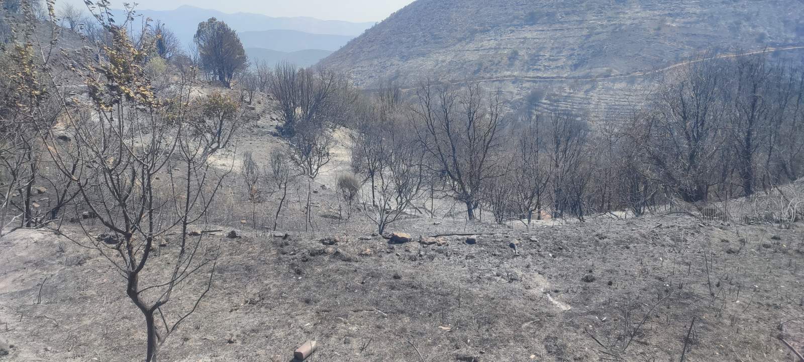 Χθες με τον καπνό να έχει καταλαγιάσει αποκαλύφθηκε και το μαύρο από τις τεράστιες καμένες εκτάσεις στη περιοχή, όπου πέρα από τις δασικές κάηκαν καλλιέργειες με ελιές, συκιές και αμπέλια με τους κατοίκους να μετρούν τις τεράστιες ζημιές μπροστά σε ένα δύσκολο μέλλον.