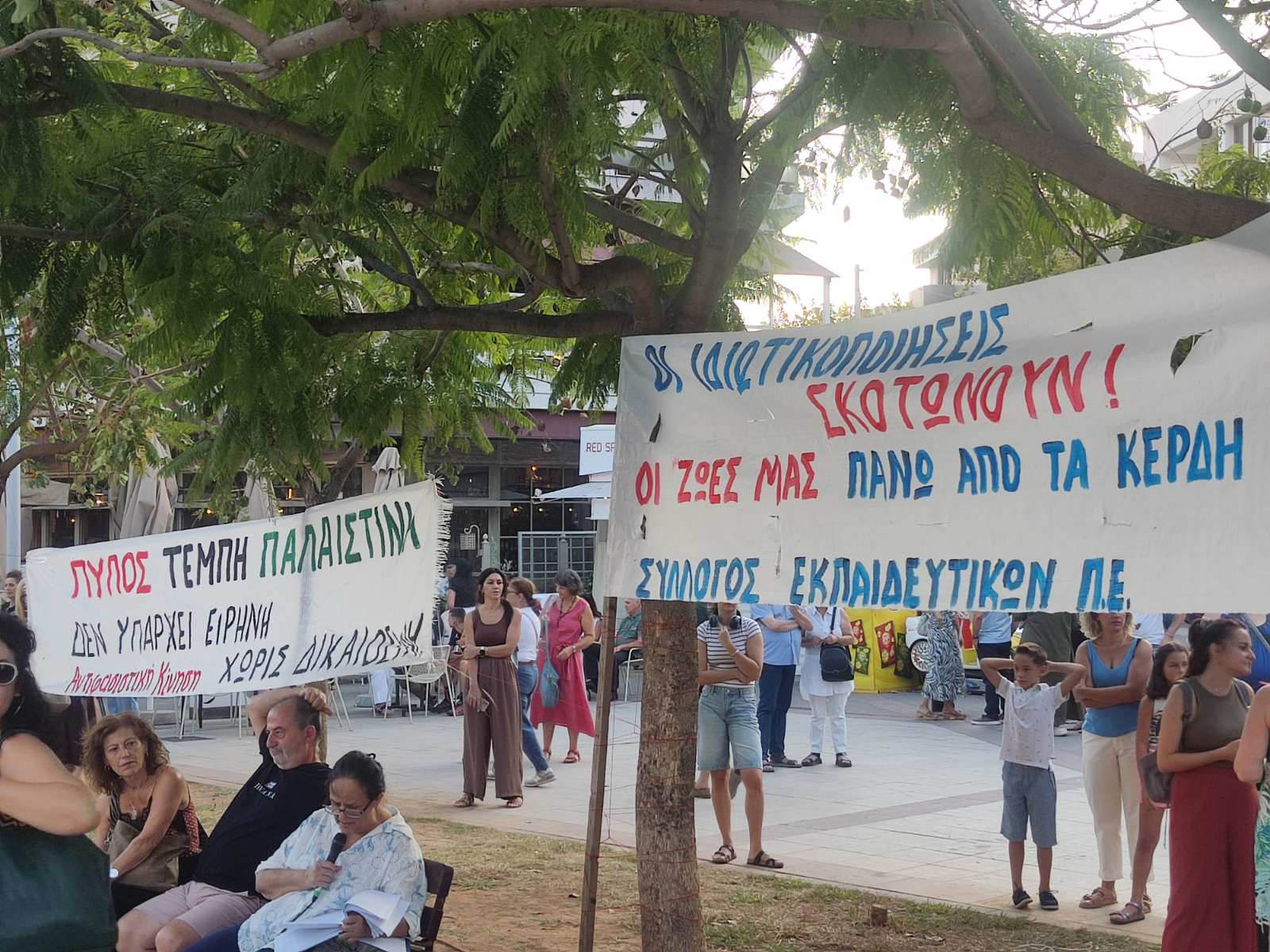 Χαιρετισμούς απηύθυναν οι πρόεδροι του Νομαρχιακού Τμήματος Μεσσηνίας της ΑΔΕΔΥ Δημήτρης Φαββατάς και του Συλλόγου Εκπαιδευτικών Πρωτοβάθμιας Εκπαίδευσης Μεσσηνίας Χριστίνα Λαδά.