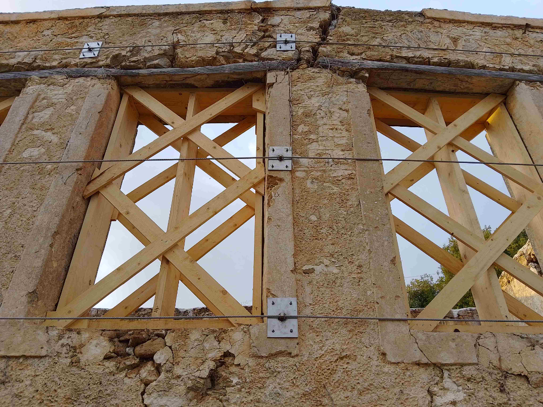 Οι εργασίες αφορούσαν σύστημα περίδεσης με ανοξείδωτα συρματόσχοινα, στεγάνωση στέψης λιθοδομών με στρώση τσιμεντοκονίας, αρμολόγημα στέψης λιθοδομών με κονίαμα και κατασκευή εμπειρικών διατάξεων από δομική ξυλεία στα παράθυρα του κτηρίου για την άρση της παραμόρφωσής τους, με στόχο την διάσωσή του.
