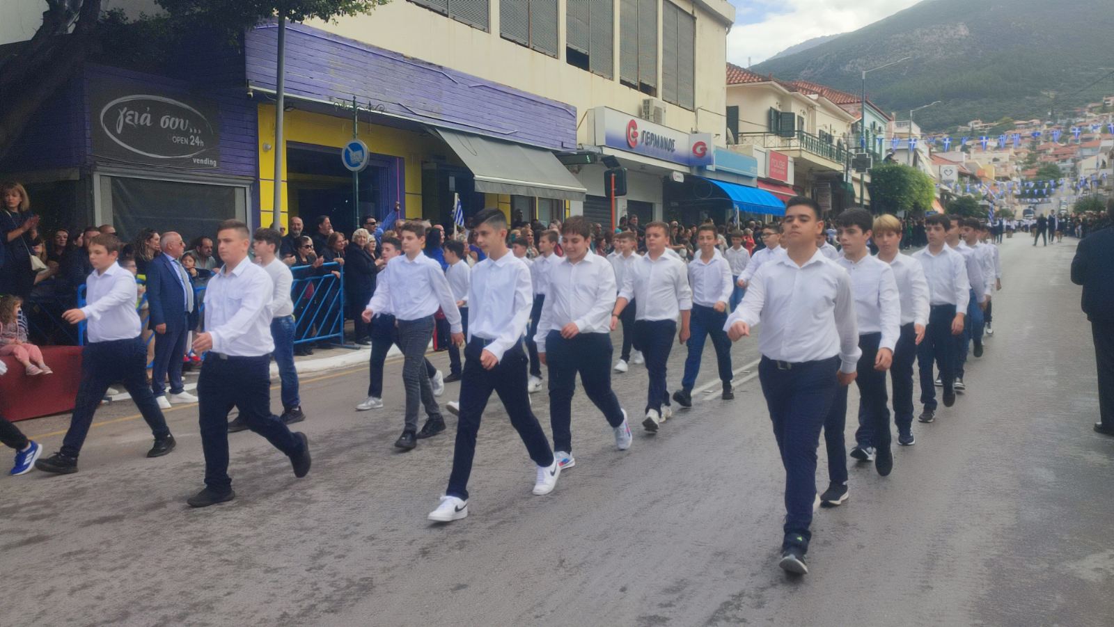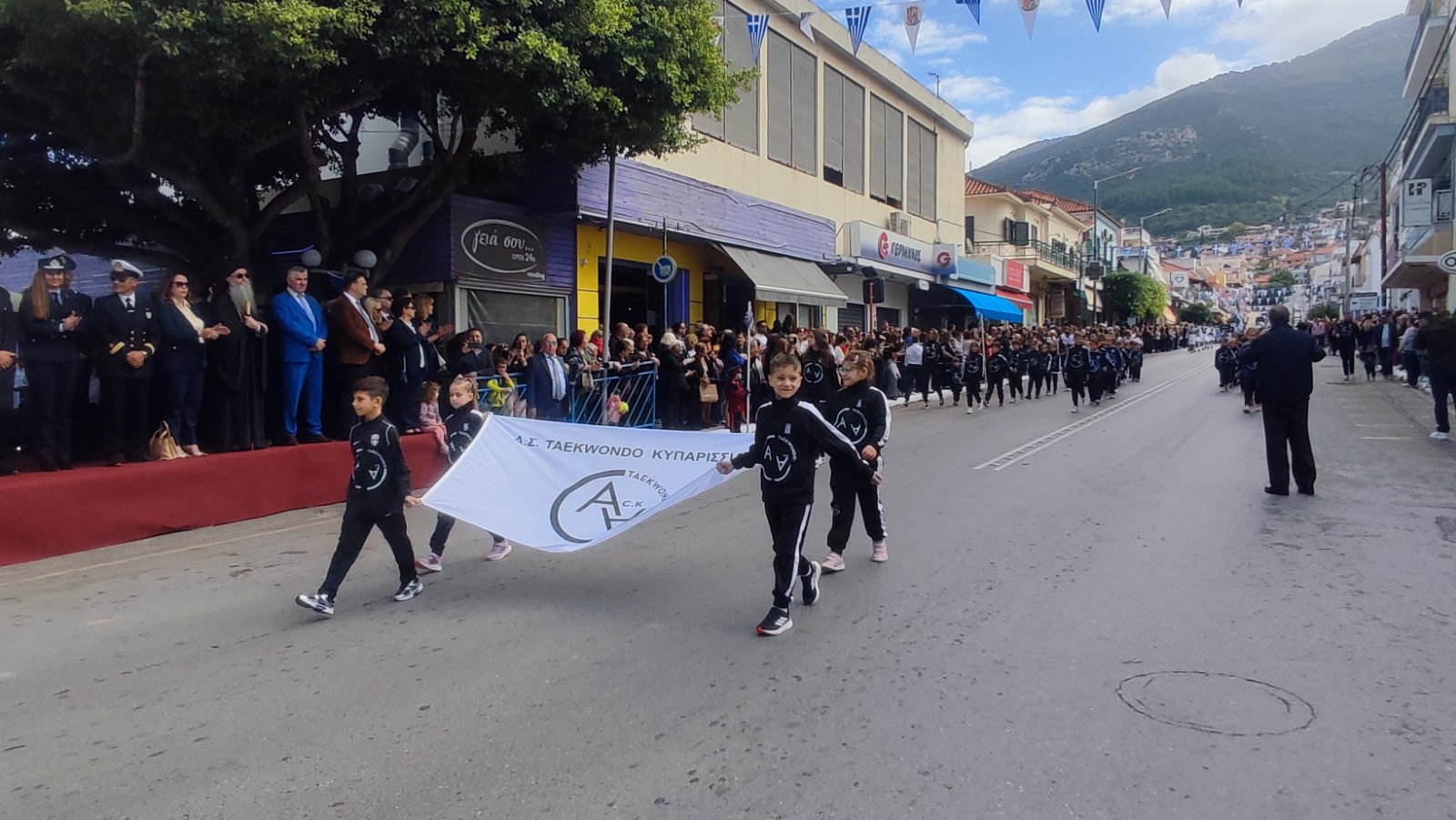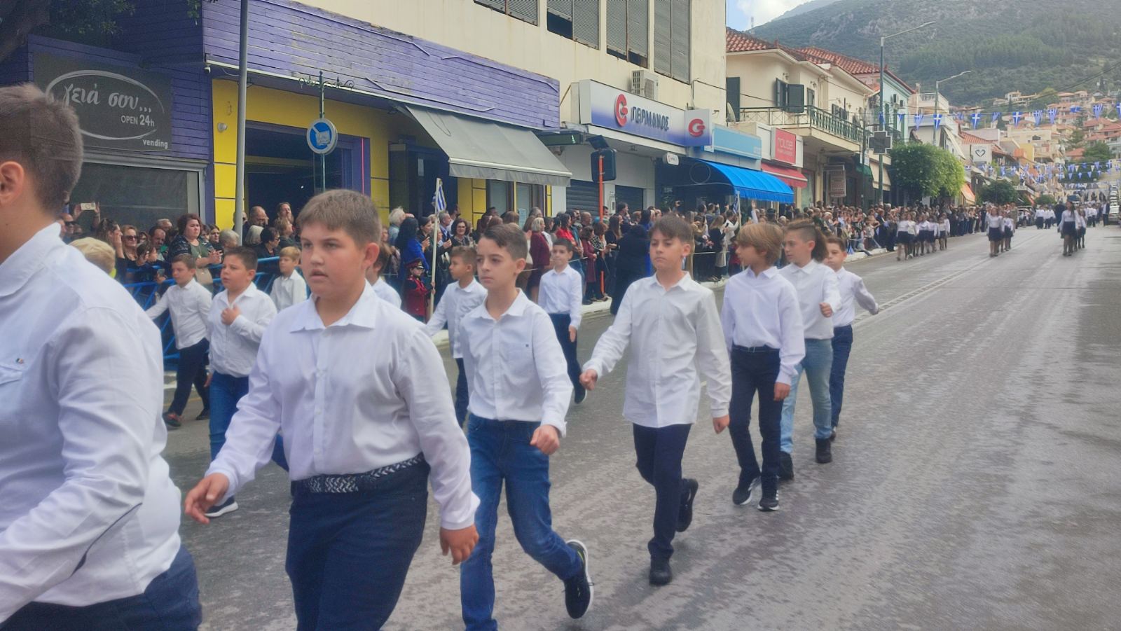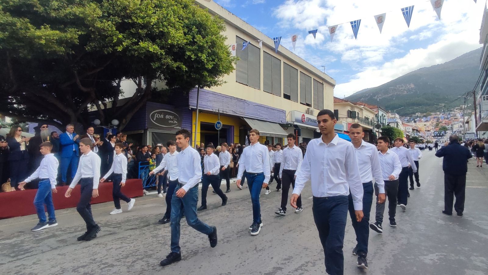 Ακολούθησε η μεγάλη μαθητική παρέλαση στην οδό Ελευθερίου Βενιζέλου παρουσία πλήθους κόσμου που χειροκρότησε με θέρμη τα παιδιά της πόλης. Οι εκδηλώσεις έκλεισαν με παράσταση παραδοσιακών χορών από το Μορφωτικό Εκπολιτιστικό Σύλλογο Κυπαρισσίας (ΜΕΣΚ) στην κεντρική πλατεία.