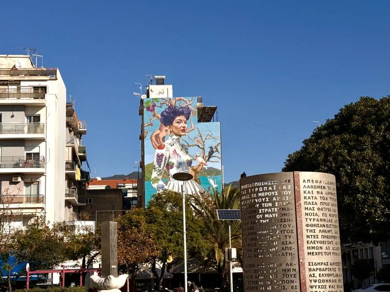 “Και έτσι ξαφνικά η κεντρική πλατεία Καλαμάτας αποκτά ένα πρόσωπο και δεκάδες συμβολισμούς. Λίγο ακόμη έχει μείνει για να σας τα αποκαλύψουμε” ανέφερε σε ανάρτηση του στο facebook ο αντιδήμαρχος Βασίλης Παπαευσταθίου, με την ολοκλήρωση της τοιχογραφίας να υπολογίζεται στα μέσα της επόμενης εβδομάδας.