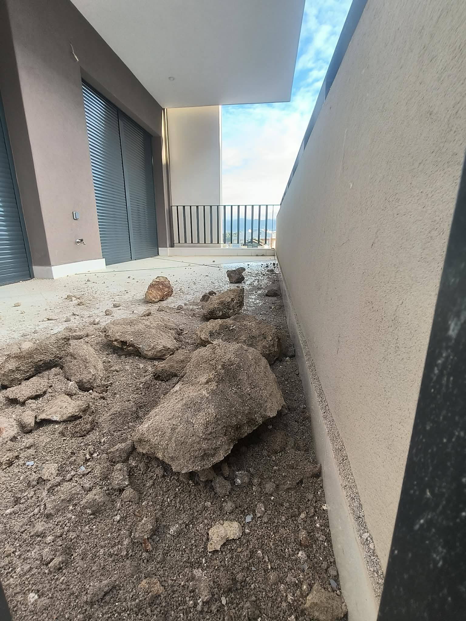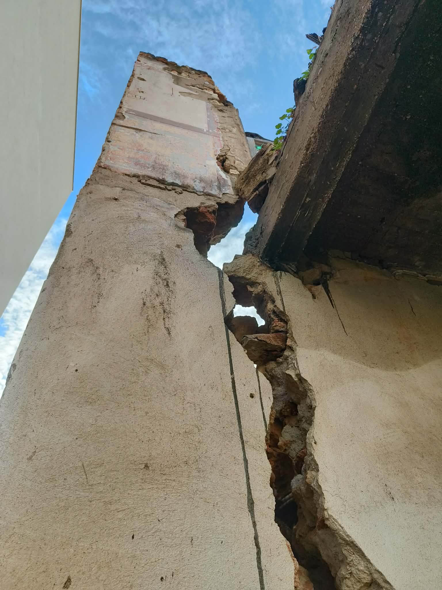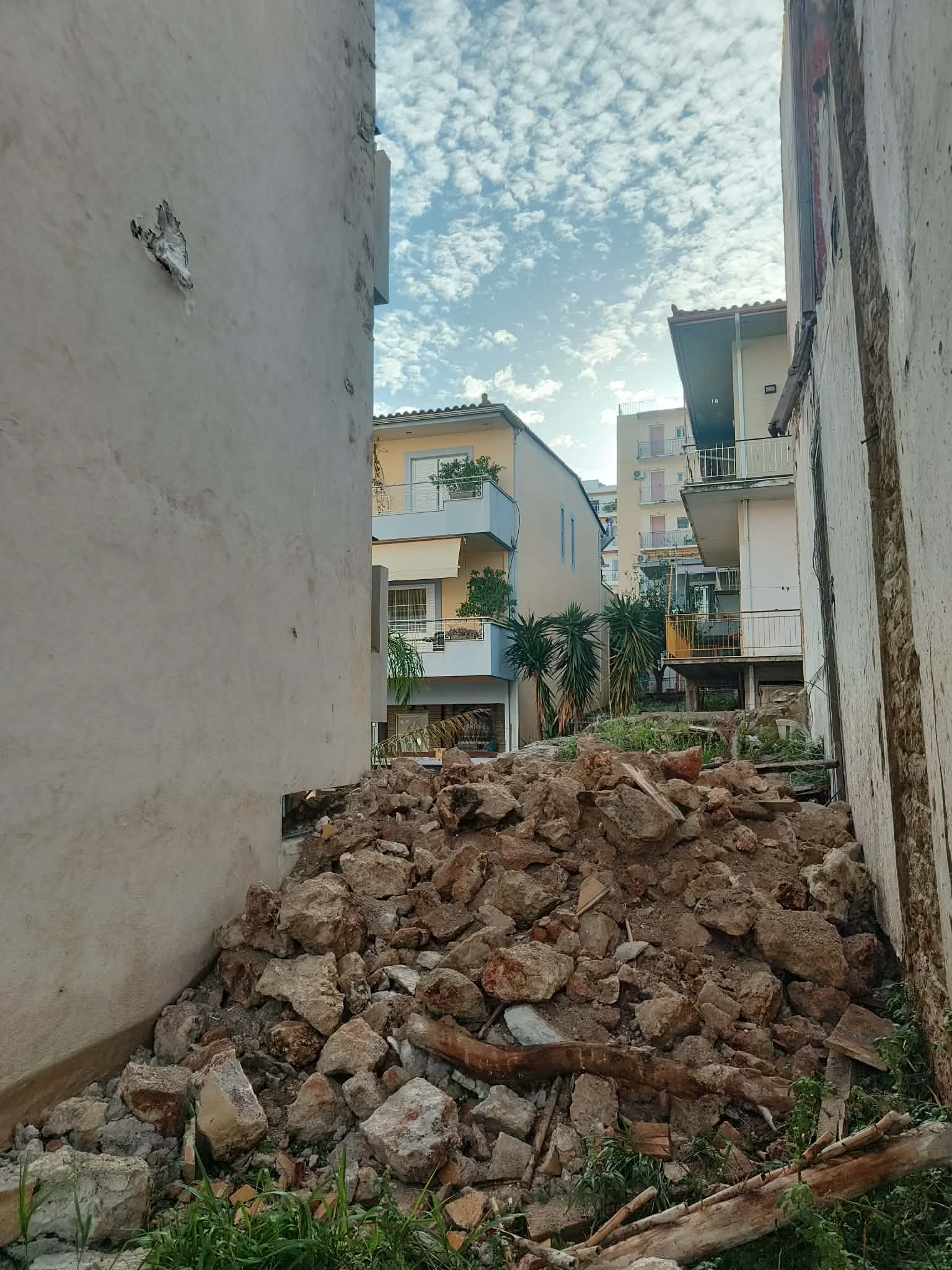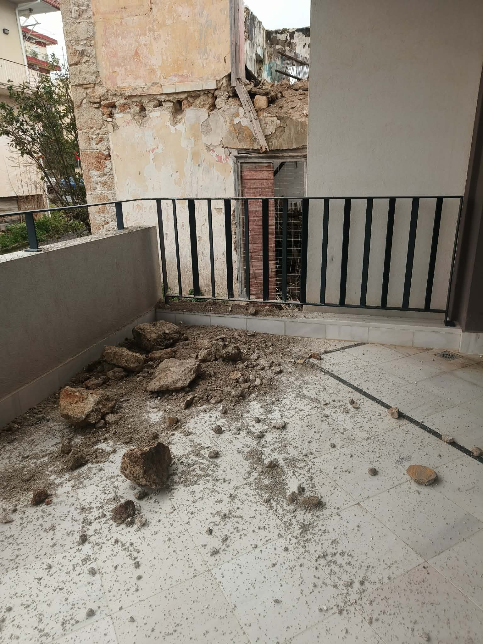 Μέχρι που προχθές το βράδυ τμήμα του κτηρίου έπεσε πάνω στο σπίτι του. Από τύχη δεν υπήρξαν τραυματισμοί, καθώς πέτρες και χώματα κατέληξαν στον τοίχο και το μπαλκόνι του.