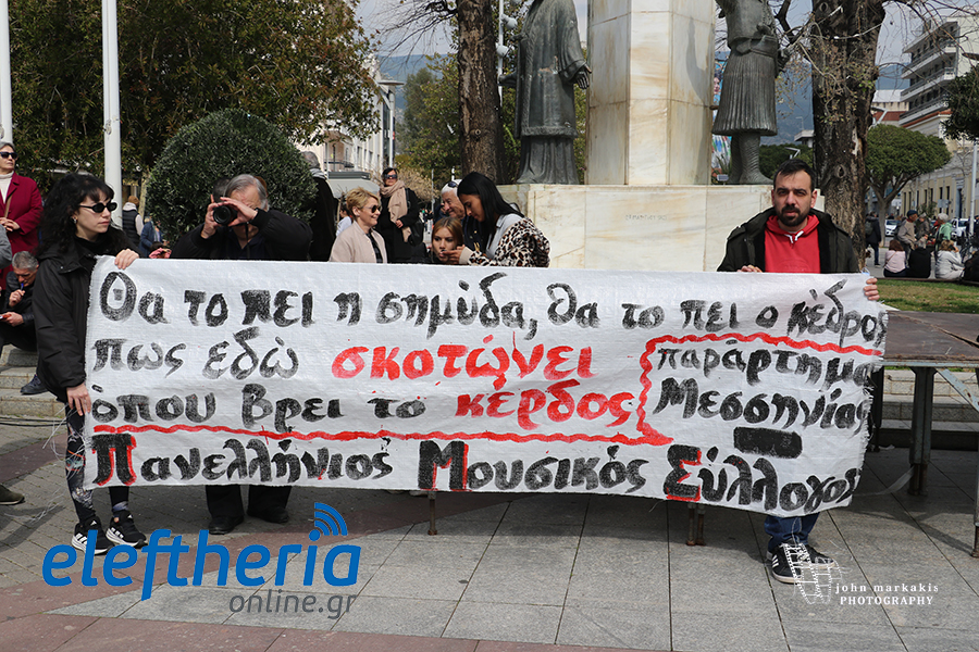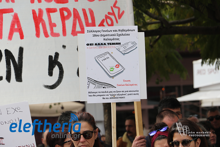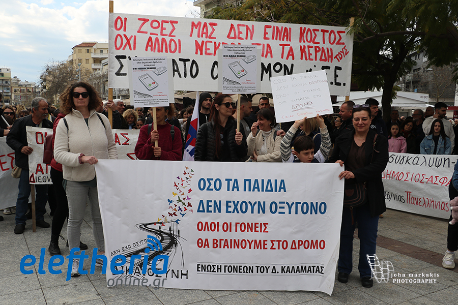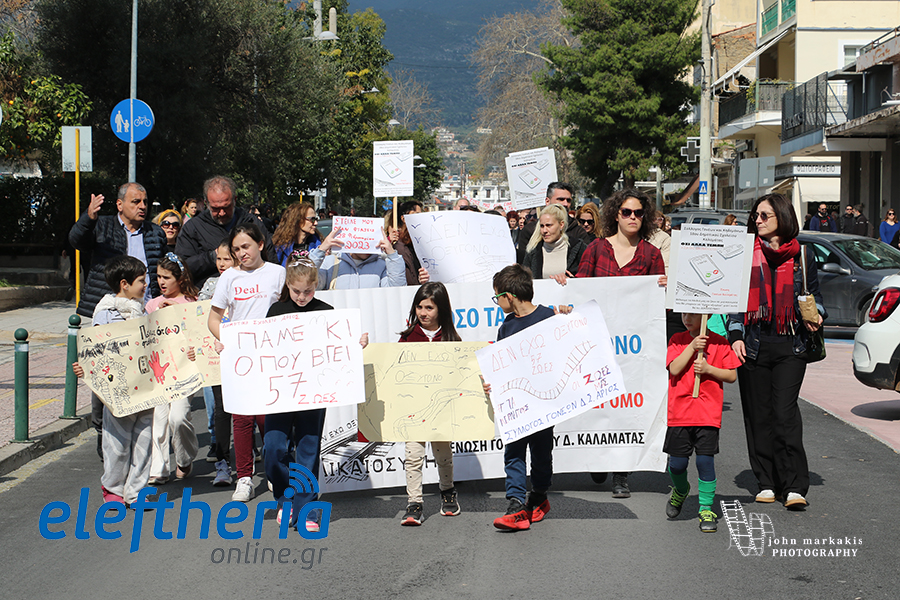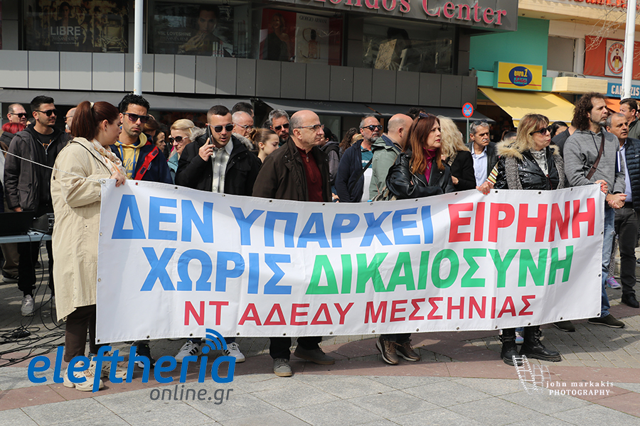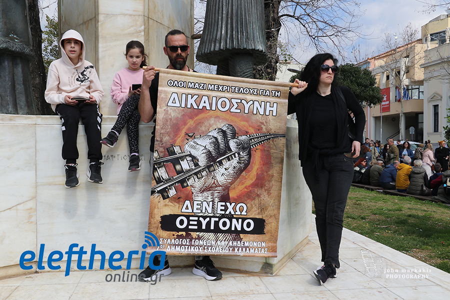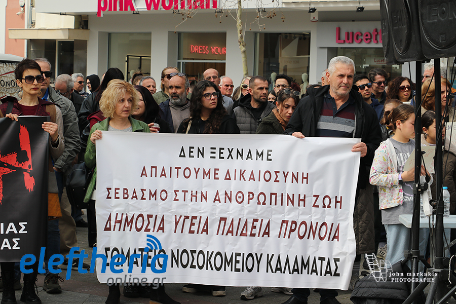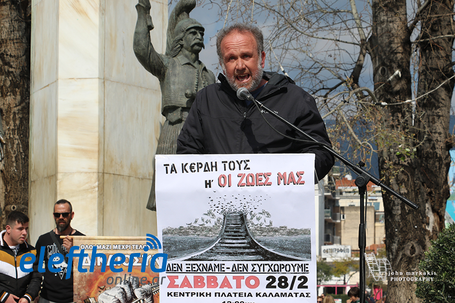 Κατά τη συγκέντρωση μίλησαν η Στέλλα Χρηστέα, που διάβασε το μήνυμα του Συλλόγου Θυμάτων Τεμπών, η Μαρία Μήτση που διάβασε τα ονόματα των 57 θυμάτων, ο πρόεδρος του Νομαρχιακού Τμήματος Μεσσηνίας της ΑΔΕΔΥ Δημήτρης Φαββατάς, ο πρόεδρος του Σωματείου Οικοδόμων Μεσσηνίας Παναγιώτης Καράμπελας, ο πρόεδρος του Σωματείου Συνταξιούχων ΙΚΑ - ΕΦΚΑ Καλαμάτας Παναγιώτης Κουφαλάκος, ο ηθοποιός  σκηνοθέτης Κώστας Χαλκιάς, που απήγγειλε το ποίημα "Αν ήταν γιος σου...", η εκπρόσωπος του Σωματείου Ειδικευμένων Ιατρών ΕΣΥ Μεσσηνίας Αναστασία Αναγνωστοπούλου, ο πρόεδρος του Συνδικάτου Υπαλλήλων στον Ιδιωτικό Τομέα Μεσσηνίας Βαγγέλης Λαμπρόπουλος, ο πρόεδρος του Παμμεσσηνιακού Συνδέσμου Ιδιωτικών Υπαλλήλων Γιώργος Κανέλης, η πρόεδρος του Συλλόγου Εκπαιδευτικών Πρωτοβάθμιας Εκπαίδευσης Μεσσηνίας Χριστίνα Λαδά, ο πρόεδρος της Α' ΕΛΜΕ Μεσσηνίας Φώτης Γαϊτάνης, η εκπρόσωπος των Συνταξιούχων Εκπαιδευτικών Ευτυχιάννα Παπαδοπούλου, ο πρόεδρος της Ενωσης Συλλόγων Γονέων Καλαμάτας Γρηγόρης Οικονομόπουλος και ο εκπρόσωπος του Συνδικάτου Τροφίμων - Ποτών Αρης Κομπότης.