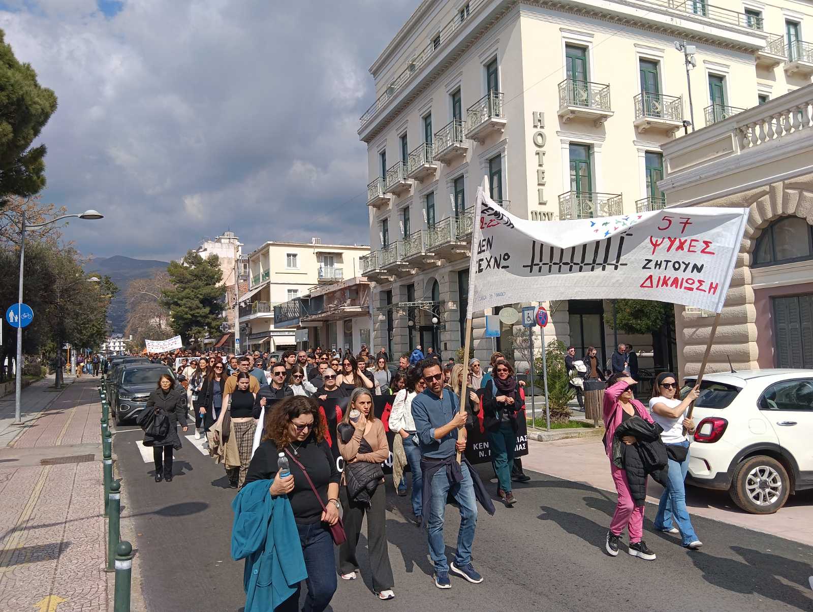 Καλαμάτα: Δυναμική πορεία και συγκέντρωση για τα 3 χρόνια από τη... μαύρη νύχτα των Τεμπών (βίντεο-φωτογραφίες)