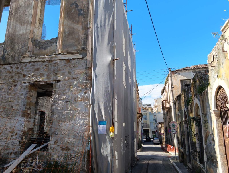 * Το πρώτο κτήριο που ανακατασκευάζεται, είναι ένα διώροφο στη γωνία Αριστοδήμου και Αβίας.