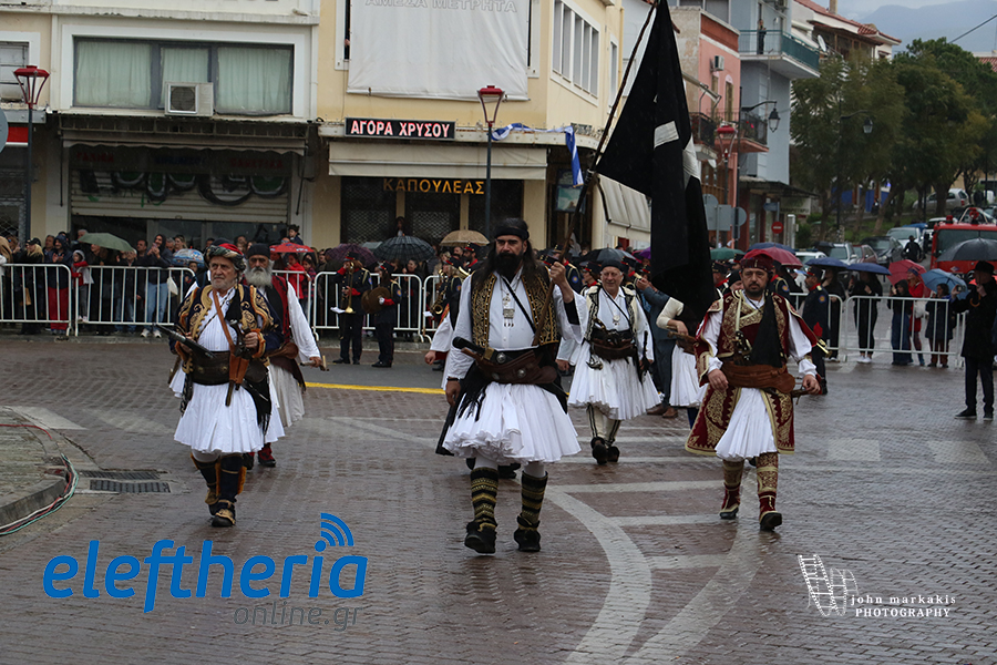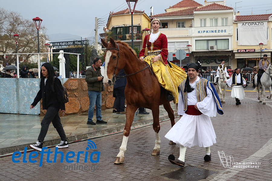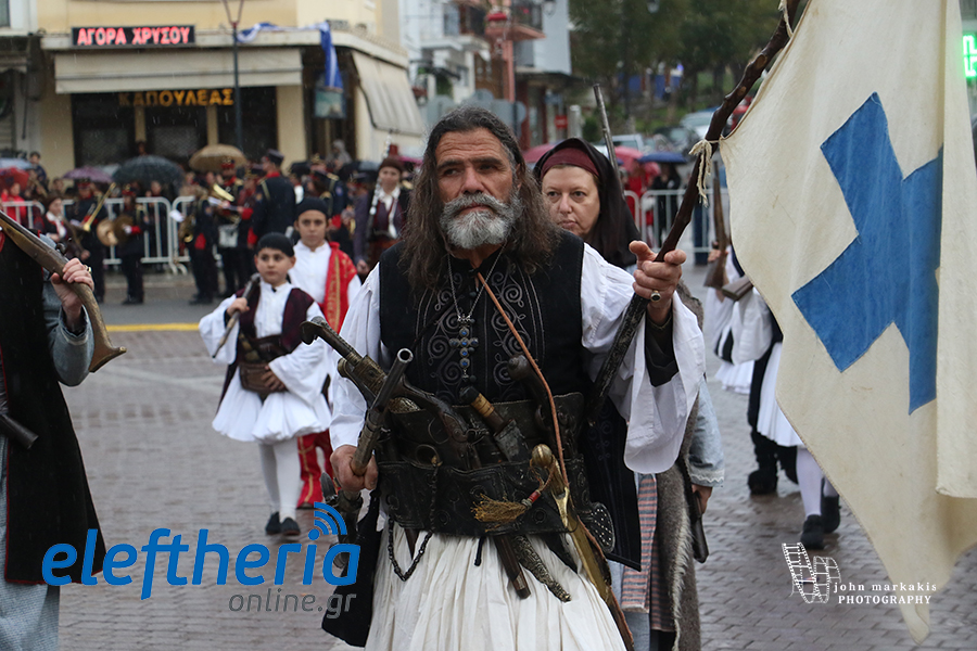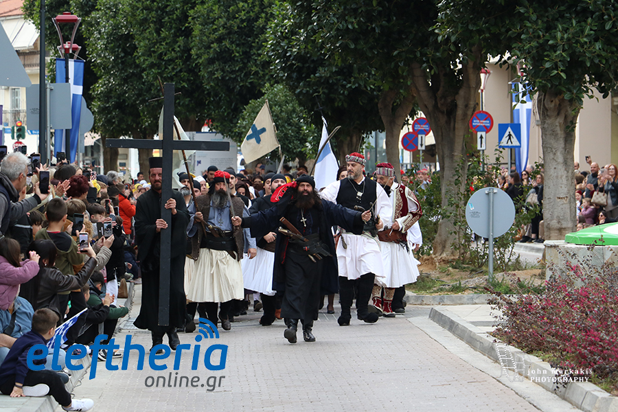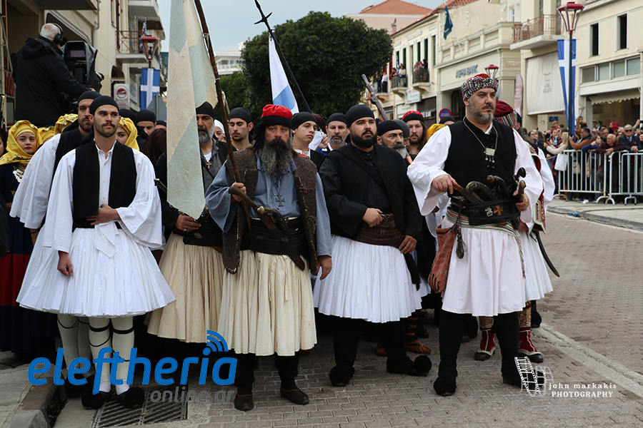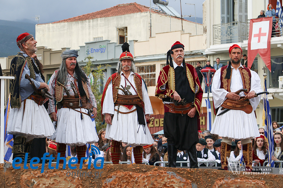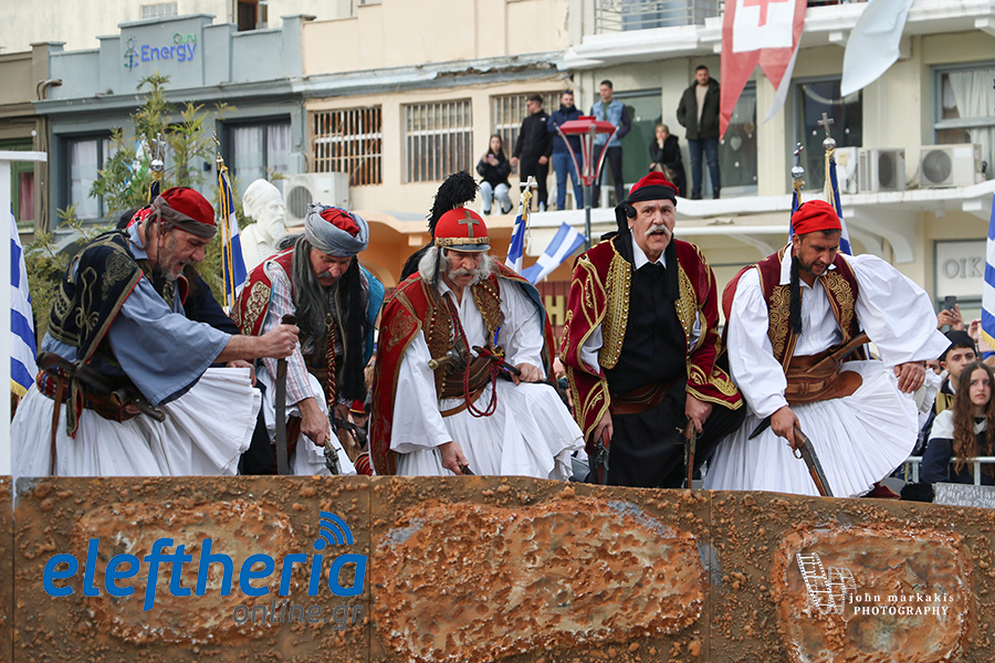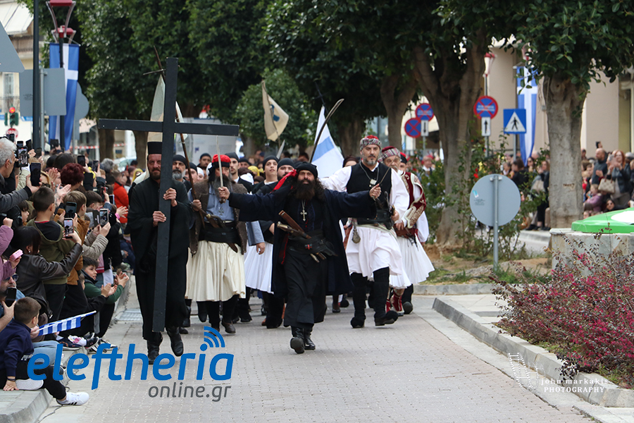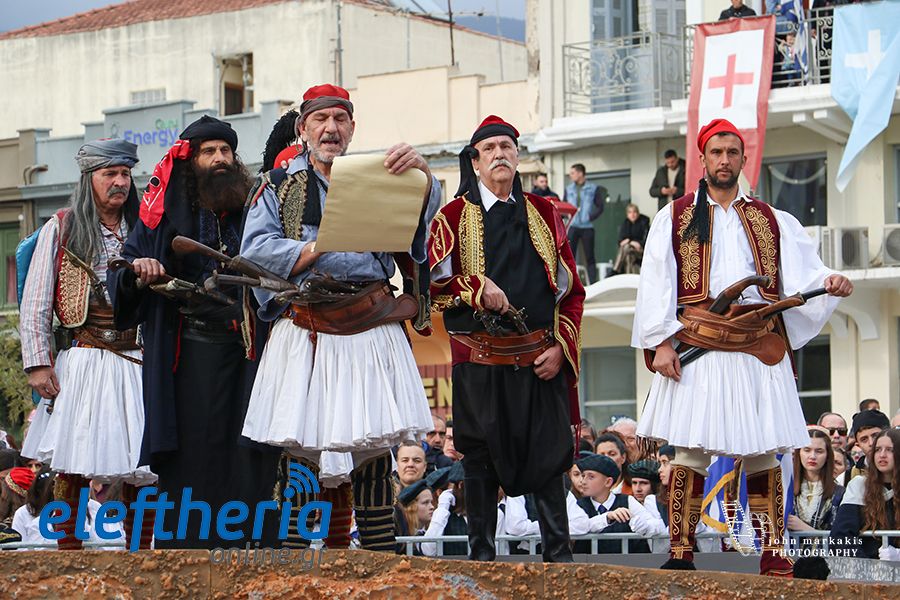 Ακολούθησε η αναπαράσταση της απελευθέρωσης της Καλαμάτας, με τους οπλαρχηγούς και τα παλικάρια τους, Πελοποννησίους και Μανιάτες που μπήκαν στην πόλη.