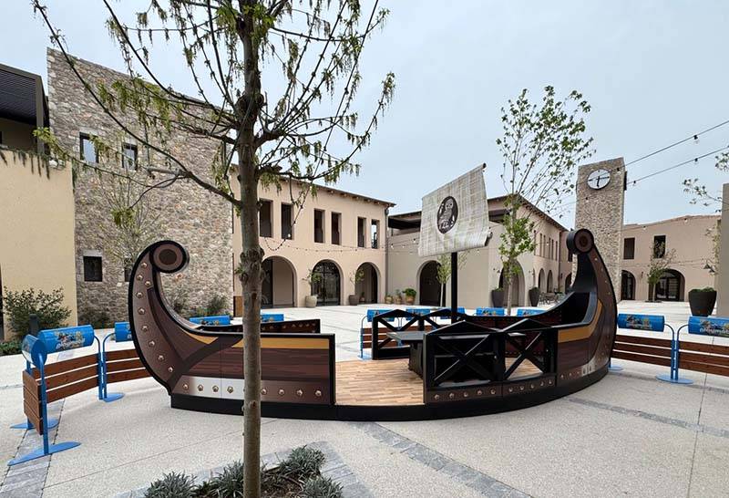 Το μεγάλο ξύλινο καράβι με μήκος 9 μέτρα θυμίζει τα θαλασσινά ταξίδια των ηρώων, ένας σύγχρονος φόρος τιμής στους θαλασσοπόρους του Ομήρου. Ο Κύκλωπας Πολύφημος υψώνεται σαν γίγαντας δίπλα στον Δία και την Αθηνά, ενώ οι μικροί επισκέπτες περιηγούνται σε έναν χώρο όπου η ελληνική μυθολογία ζωντανεύει μέσα από τους ήρωες της Playmobil. Η φιλοσοφία του Playmobil που βασίζεται στην ανάπτυξη της φαντασίας και της δημιουργικότητας, συνδέεται εδώ με τον ελληνικό μύθο. Το Playmobil PlayPark ενισχύει τις οικογενειακές δραστηριότητες της Costa Navarino και προσφέρει μια εμπειρία όπου το παιχνίδι και ο πολιτισμός συναντιούνται μέσα σε ένα περιβάλλον ασφάλειας, αισθητικής και αυθεντικής φιλοξενίας. Η Ειρήνη Ευφραιμίδη, Marketing Manager της Playmobil Ελλάς, αναφέρει ότι η συνεργασία με την Costa Navarino αποτελεί μια δημιουργική «Οδύσσεια» που ενώνει τους μύθους της αρχαίας Ελλάδας με τον κόσμο του Playmobil. Είπε πως: «Το Playmobil Kids PlayPark στη Navarino Agora είναι ένας τόπος όπου το παιδί μπορεί να γίνει ταξιδευτής, αφηγητής και δημιουργός της δικής του περιπέτειας. Πιστεύουμε στη δύναμη του παιχνιδιού ως μέσο έκφρασης και επικοινωνίας και είμαστε περήφανοι που προσφέρουμε ένα περιβάλλον που εμπνέει φαντασία, ασφάλεια και χαρά. Η συνεργασία μας με την Costa Navarino ενώνει δύο κόσμους που υπηρετούν την ποιότητα και τη δημιουργία και είμαστε βέβαιοι ότι θα προσφέρει εμπειρίες που θα μείνουν αξέχαστες στις οικογένειες που θα μας επισκεφθούν».