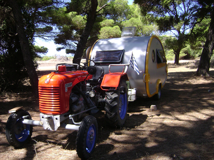 Τον 63χρονο Χέλμουτ Βίλχεμ τον συναντήσαμε στο δάσος της Ελαίας όπου έχει κατασκηνώσει και θα παραμείνει για λίγες μέρες ακόμη πριν πάρει το δρόμο της επιστροφής, καθώς θέλει προς το τέλος Σεπτεμβρίου να έχει επιστρέψει στην πατρίδα του πριν πιάσουν τα κρύα. Με την βοήθεια της Ντορέτας Αναστασίου που έκανε τη μετάφραση, μιλήσαμε μαζί του για αυτή του την επιλογή και τις εμπειρίες του. Οπως μας είπε λοιπόν, είναι από μια περιοχή κοντά στην πόλη της Βιέννης, είναι συνταξιούχος και εργαζόταν ως τυπογράφος. Στη χώρα μας έρχεται 30 χρόνια τώρα και έχει ταξιδέψει με διάφορα μέσα όπως αυτοκίνητο, τροχόσπιτο και μηχανή. Αποφάσισε όμως να κάνει το ταξίδι αυτό και με τρακτέρ καθώς με την μικρή ταχύτητα που κινείται μπορεί να απολαμβάνει το φυσικό τοπίο, το βλέπει καλύτερα και το γνωρίζει, μαζί και τους ανθρώπους των περιοχών, από τις οποίες περνά. Και όπως μας είπε, παρά τα τόσα ταξίδια του πρώτη φορά συνειδητοποίησε πόσο όμορφη είναι η Ελλάδα.