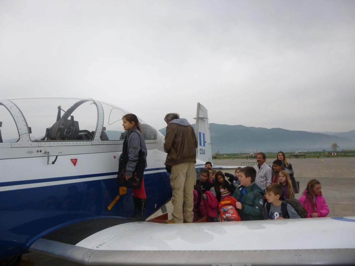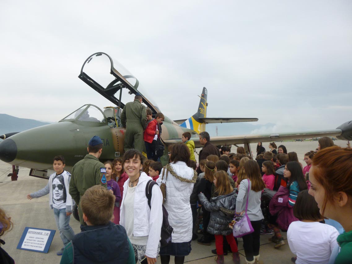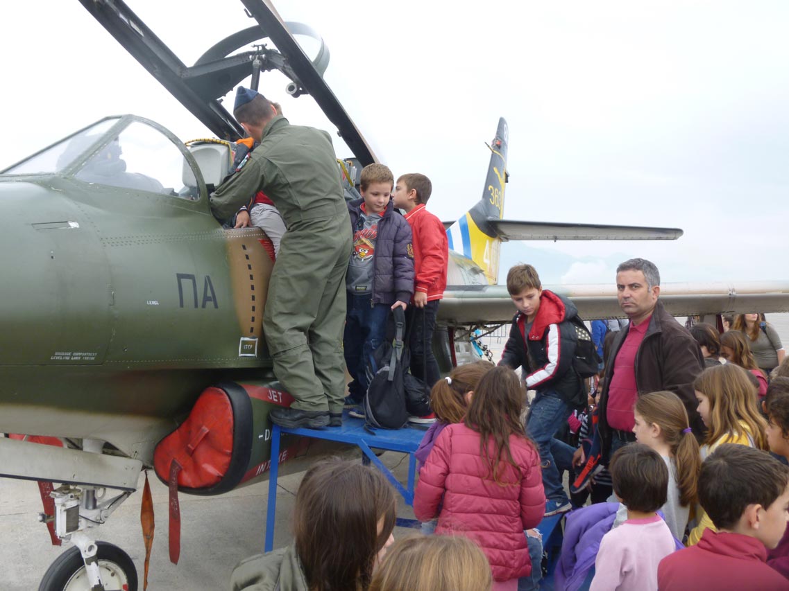 Σήμερα το αεροδρόμιο της 120 ΠΕΑ επισκέφθηκαν εκατοντάδες παιδιά από σχολεία της Μεσσηνίας, τα οποία είχαν την ευκαιρία να δουν από κοντά εκπαιδευτικά και μαχητικά αεροσκάφη την εντυπωσιακή επίδειξη του εκπαιδευτικού αεροσκάφους Τ-6Α της ομάδας ¨Δαίδαλος".