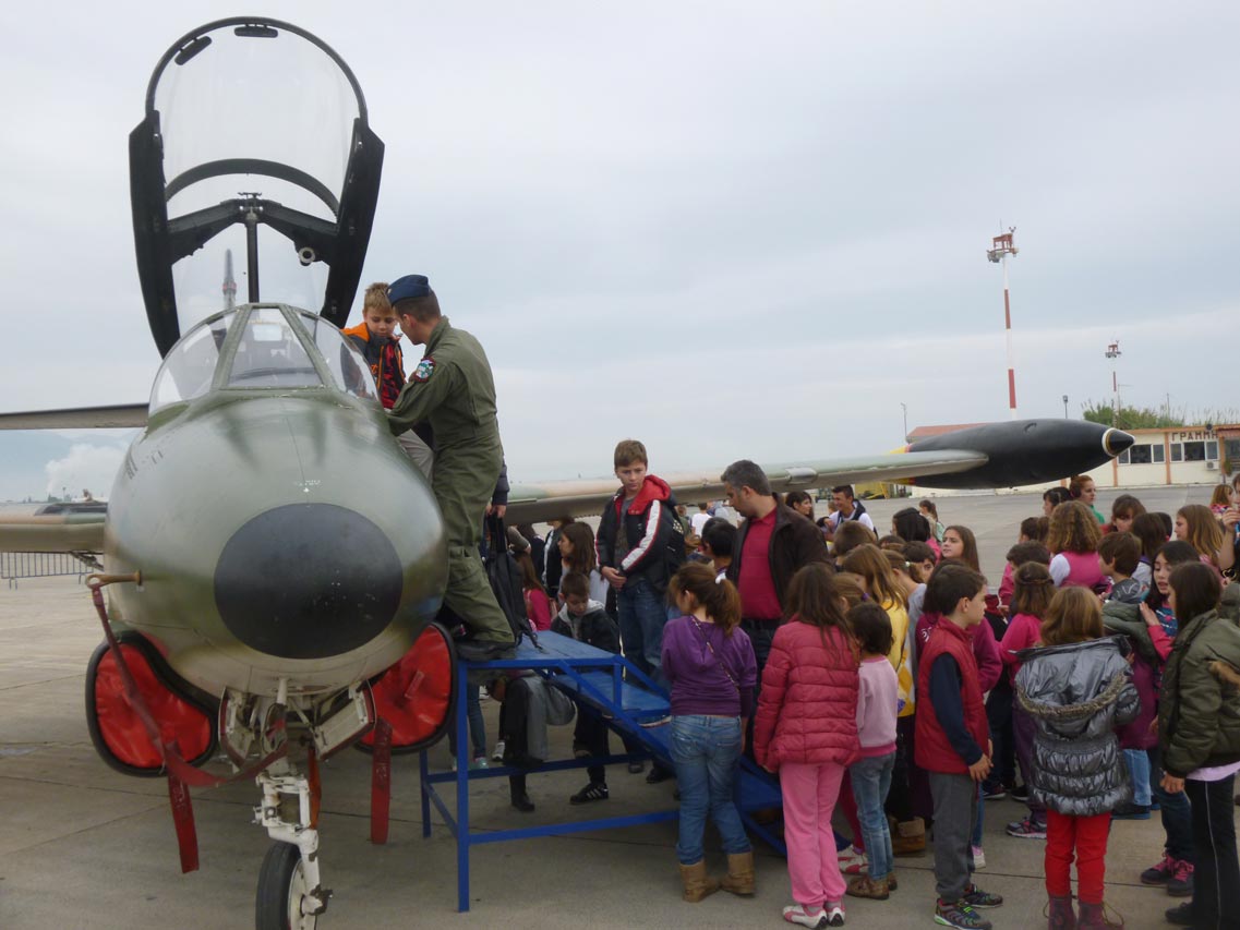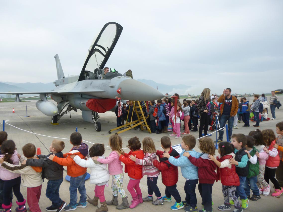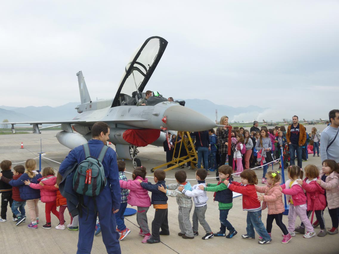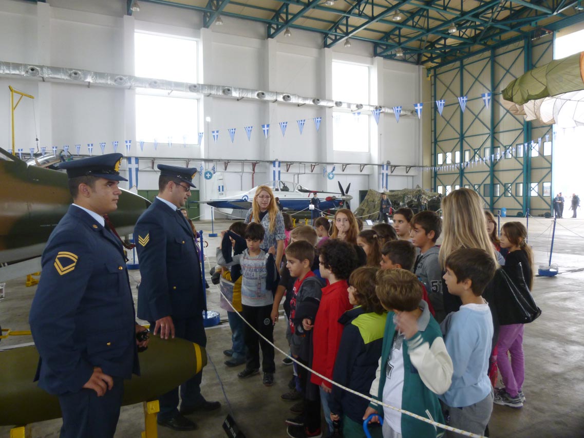 Σήμερα το αεροδρόμιο της 120 ΠΕΑ επισκέφθηκαν εκατοντάδες παιδιά από σχολεία της Μεσσηνίας, τα οποία είχαν την ευκαιρία να δουν από κοντά εκπαιδευτικά και μαχητικά αεροσκάφη την εντυπωσιακή επίδειξη του εκπαιδευτικού αεροσκάφους Τ-6Α της ομάδας ¨Δαίδαλος".