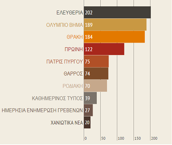 Μια ανάσα από την κορυφή βρίσκεται η "Ελευθερία" και στο Twitter! Στο μέσο κοινωνικής δικτύωσης, που χαρακτηρίζεται ως το πλέον ενημερωτικό, με ένα δυναμικό και υψηλής μόρφωσης κοινό, η "Ελευθερία" διατηρεί έναν λογαριασμό με 2.181 Followers, που τη φέρνει στη δεύτερη θέση της μέτρησης του reforme.gr. Στην πρώτη θέση βρίσκονται τα "Χανιώτικα Νέα" με 2.850 followers και στην τρίτη η "Δημοκρατική" της Ρόδου με 1.912 followers. Στην τέταρτη το "Θάρρος" της Καλαμάτας με 1.713 followers, ενώ την πρώτη πεντάδα συμπληρώνει ο "Παρατηρητής" της Κομοτηνής με 1.659 followers.