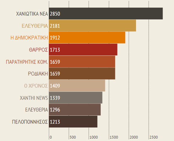 Στο δημοφιλέστερο μέσο κοινωνικής δικτύωσης προσελκύει στη σελίδα της ένα κοινό της τάξης των 55.263 ατόμων, επίδοση που την φέρνει πρώτη μεταξύ των περιφερειακών εφημερίδων, αλλά και ανάμεσα στα κορυφαία μέσα στο σύνολο της χώρας. Στην δεύτερη θέση της κατάταξης ακολουθεί η "Δημοκρατική" της Ρόδου με 22.484 likes, ενώ στην τρίτη θέση βρίσκεται η "Ροδιακή" με 21.951 likes. Τέταρτη είναι η εφημερίδα το "Θάρρος" της Καλαμάτας με 18.364 likes και πέμπτη η "Πατρίς" Πύργου με 15.905 likes.