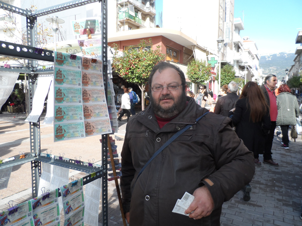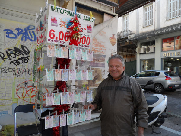 Ο Κώστας Δωδεκάτος χαρακτηρίζει μέτρια την κίνηση, αφού όπως λέει "έλλειψη χρημάτων, στάση εμπορίου". Ωστόσο αισιοδοξεί πως η κίνηση θα αυξηθεί όσο πλησιάζει η παραμονή της Πρωτοχρονιάς. Για την ώρα διαπιστώνει, πως απ' όσους κυνηγούν την τύχη τους, οι περισσότεροι επιλέγουν κρατικό λαχείο. Σε καμιά όμως περίπτωση το ενδιαφέρον δε φτάνει εκείνο της προηγούμενης χρονιάς. Μάλιστα, ακόμα και όσοι τα προηγούμενα χρόνια αγόραζαν 10 και 20 λαχεία τώρα επιλέγουν ένα, δύο ή τρία στην καλύτερη περίπτωση. Για το λαϊκό βλέπει πως υπάρχει μικρότερο ενδιαφέρον, ενώ κάποιοι επιλέγουν σκρατς.