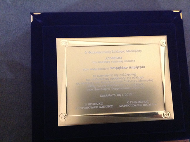 Να σημειωθεί πως κατά τη διάρκεια της εκδήλωσης τιμήθηκε ο συνταξιούχος, παλιός πρόεδρος του Φαρμακευτικού Συλλόγου Μεσσηνίας Δημήτρης Τσιριβάκος.