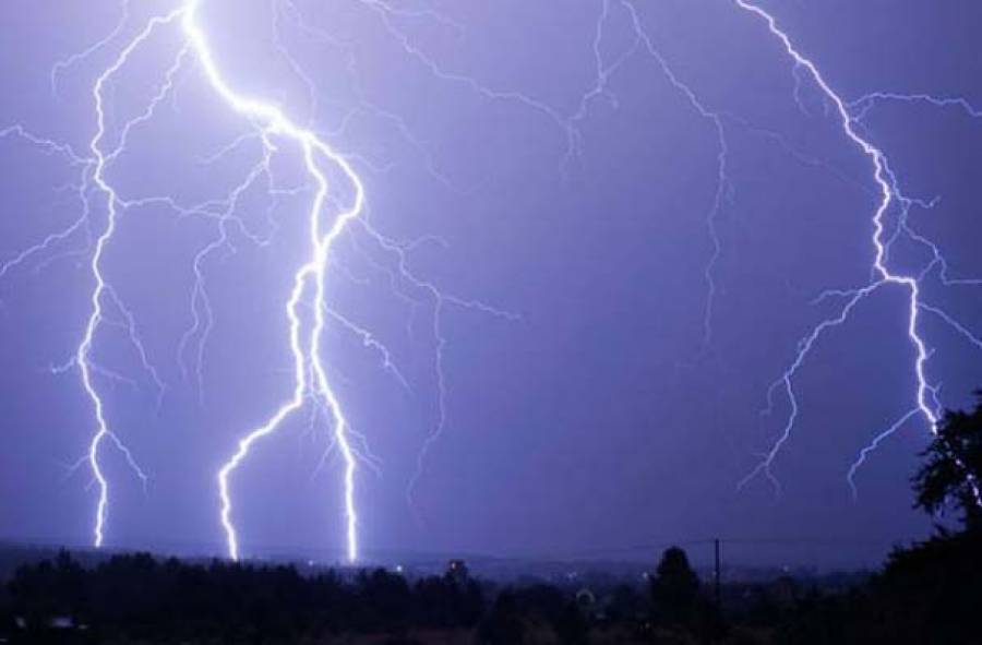 τους πολλούς κεραυνούς που συνόδευαν την έντονη βροχόπτωση, η οποία από σήμερα Σάββατο το πρωί πλήττει σχεδόν το σύνολο του νομού.