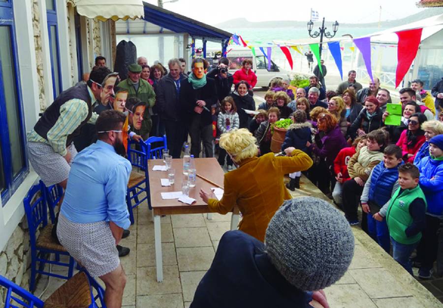 Όλα αυτά στον κάθετο πεζόδρομο όπου την παράσταση έκλεψαν τα σκετς που είχαν ετοιμάσει και παρουσίασαν τα μέλη του Συλλόγου με επίκεντρο την οικονομική κρίση και τις διαπραγματεύσεις όπου η Μέρκελ και οι πολιτικοί αρχηγοί είχαν την τιμητική τους , με σατυρικούς διαλόγους και την αθυροστομία που επιβάλουν οι μέρες αυτές έκαναν τους πάντες να γελάσουν με την ψυχή τους.