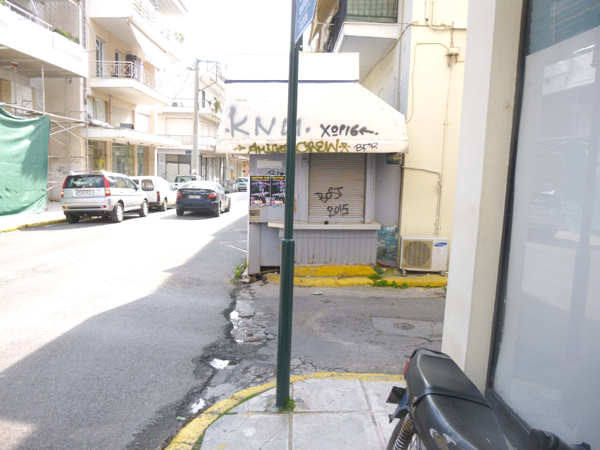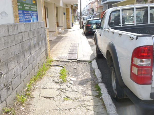 Αν αποφασίσεις να περπατήσεις στο ανατολικό πεζοδρόμιο, θα βρεις λιγότερα εμπόδια: Πριν τη Λακωνικής τζιπ έχει καβαλήσει το πεζοδρόμιο, γιατί ο οδηγός του θεωρεί επικίνδυνο το πάρκινγκ στο στενό δρόμο. Μετά τη Σαρανταπόρου στο στενό πεζοδρόμιο έχουν τοποθετηθεί κάδοι σκουπιδιών και ανακύκλωσης. Για να περάσεις πρέπει να κατέβεις στο δρόμο, που στο συγκεκριμένο ίσα που χωράει ένα αυτοκίνητο. Ανεβαίνοντας ξανά στο πεζοδρόμιο, για να μη σε "φάει" κάποιο αυτοκίνητο, κινδυνεύσεις να τσακιστείς από την κακή κατάσταση του πεζοδρομίου.