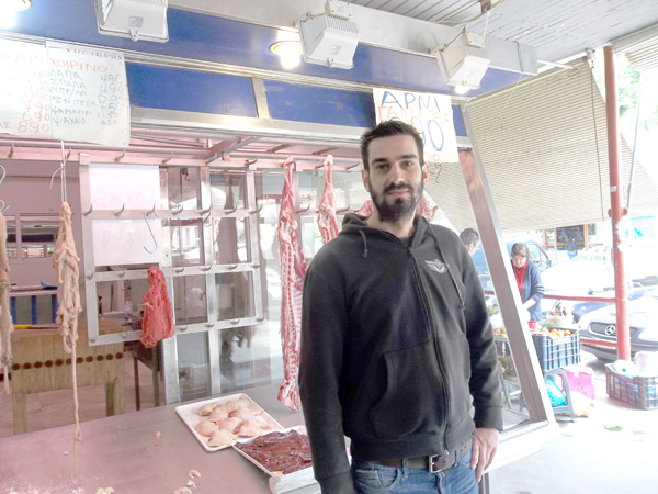 Η Ασημένια Κουκουβίνου από το κρεοπωλείο του Γιώργου Κουκουβίνου αναφέρει: «Η κίνηση είναι όπως την περιμέναμε, ήπια αλλά ικανοποιητική. Οι ποσότητες έχουν μειωθεί, γιατί ο κόσμος δεν έχει πολλά χρήματα. Υπάρχουν κάποιοι που ρωτούν τιμές από πριν, όμως γενικά το αρνί και το κατσίκι έχουν την ίδια τιμή με πέρυσι. Εμείς οι κρεοπώλες αγοράσαμε πιο ακριβά, αλλά πουλάμε το ίδιο. Η κορύφωση της δουλειάς θα είναι αύριο και το Μ. Σάββατο, και θα έχουμε και τις παραγγελίες. Οι σούβλες πάντως θα είναι λιγότερες φέτος».