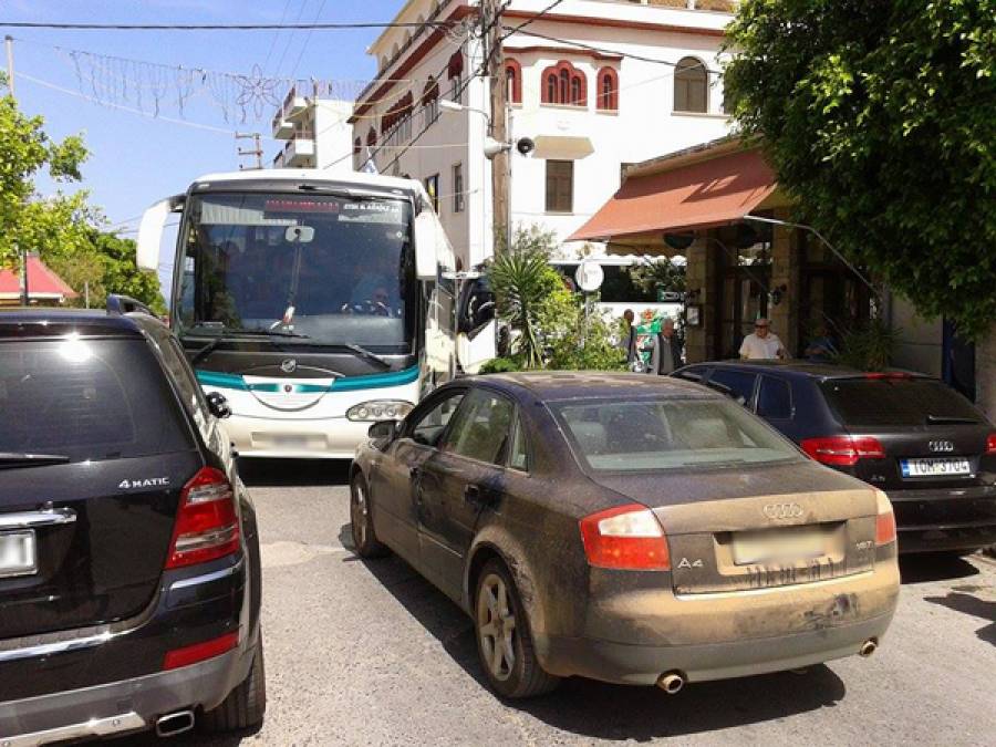 Για περίπου ένα 20λεπτο κανείς δεν έκανε όπισθεν, και τελικά με την παρέμβαση κάποιων οδηγών του ΚΤΕΛ το λεωφορείο έκανε όπισθεν και ξεπεράστηκε το πρόβλημα.