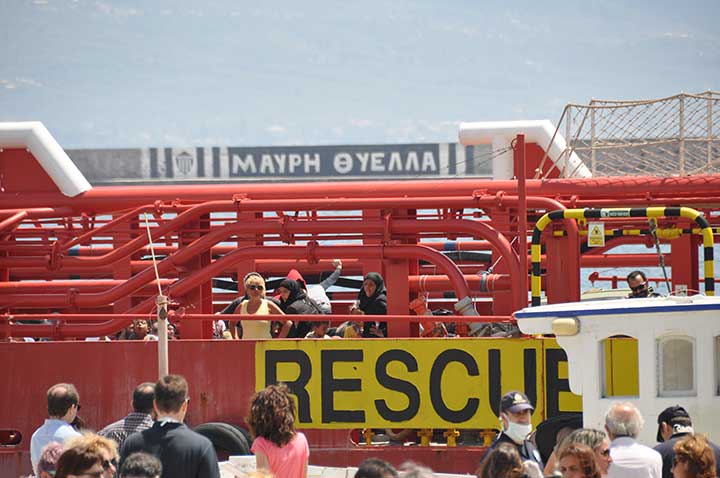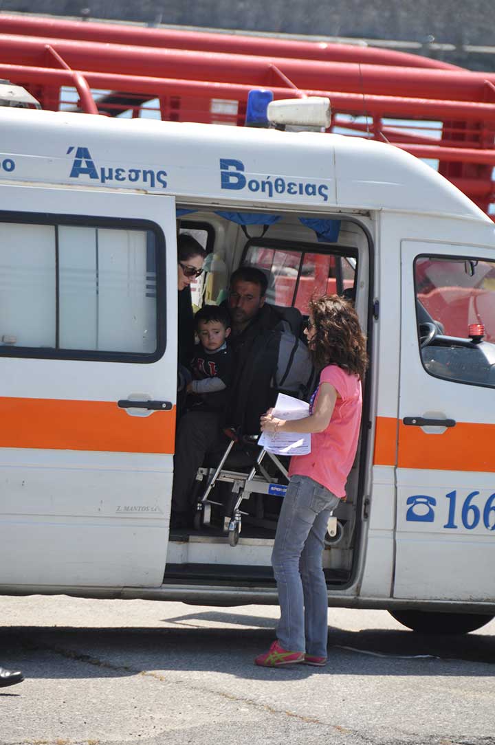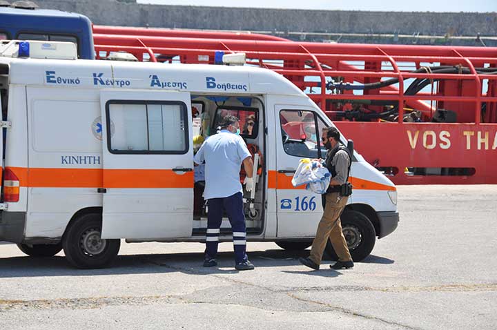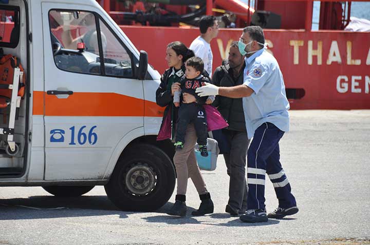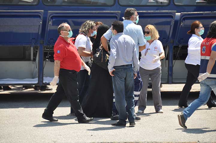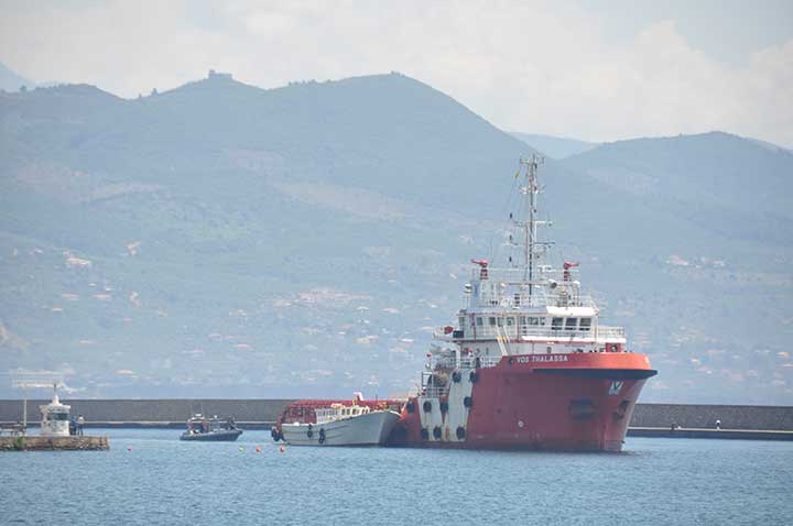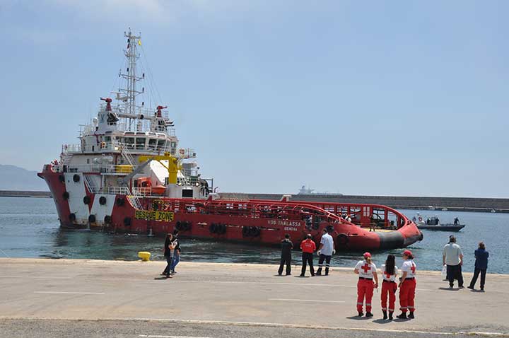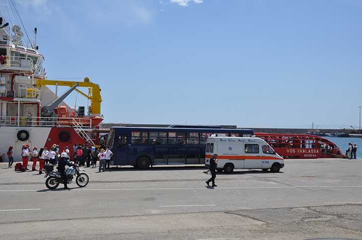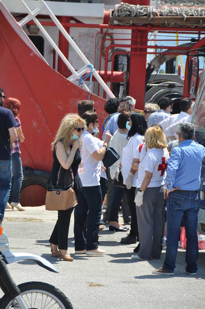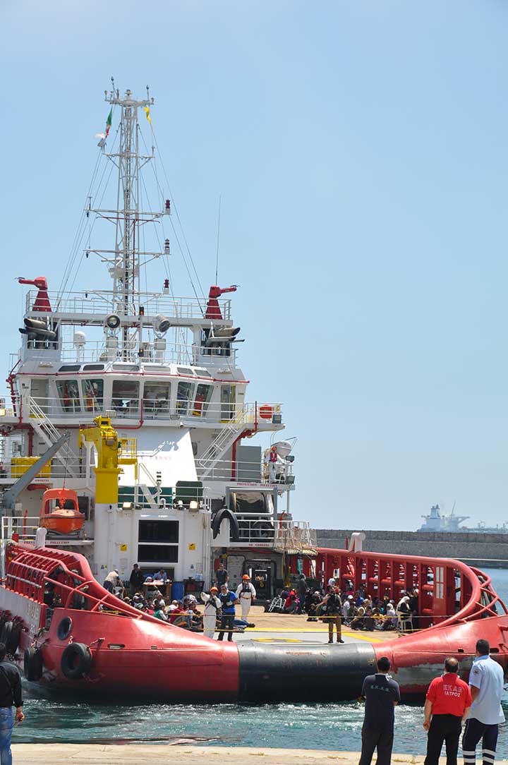Η βάρκα τους ρυμουλκήθηκε από το Ιταλικό ρυμουλκό στο οποίο επιβιβάστηκαν και το μεσημέρι αποβιβάστηκαν στο λιμάνι της Καλαμάτας. Οι εικόνες που αντίκρυσαν οι εθελοντές ήταν πραγματικά συγκλονιστικές. Μάλιστα, διακομίστηκαν στο Νοσοκομείο Καλαμάτας 7 άτομα συνολικά, μεταξύ των οποίων το βρέφος, παιδιά και μια γυναίκα με εγκαύματα λόγω της έκθεσης στον ήλιο, στη διάρκεια του ταξιδιού. Οι εθελοντές και οι εκπρόσωποι όλων των φορέων αντίκρυσαν ακόμα και περιπτώσεις ανθρώπων σε ημιλιπόθυμη κατάσταση, ενώ τα βλέμματα όλων όσοι βρέθηκαν κοντά στο λιμάνι, την ώρα που έδενε το καράβι, έπεσαν πάνω στα πολλά μικρά παιδιά. Αλλα ήταν χωμένα στην αγκαλιά των γονιών τους και άλλα έπαιζαν ακόμα και μπάλα, χωρίς να έχουν ενδεχομένως αντιληφθεί όσα συμβαίνουν.