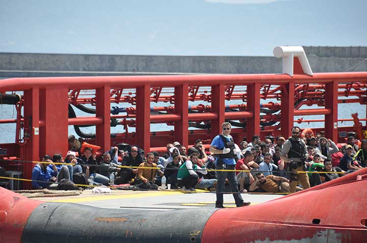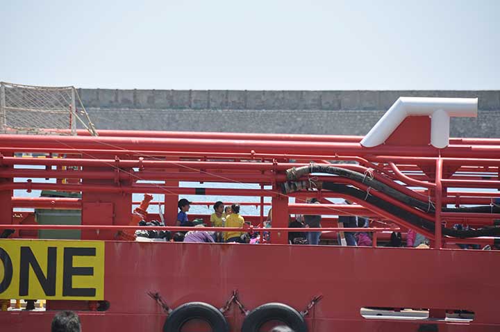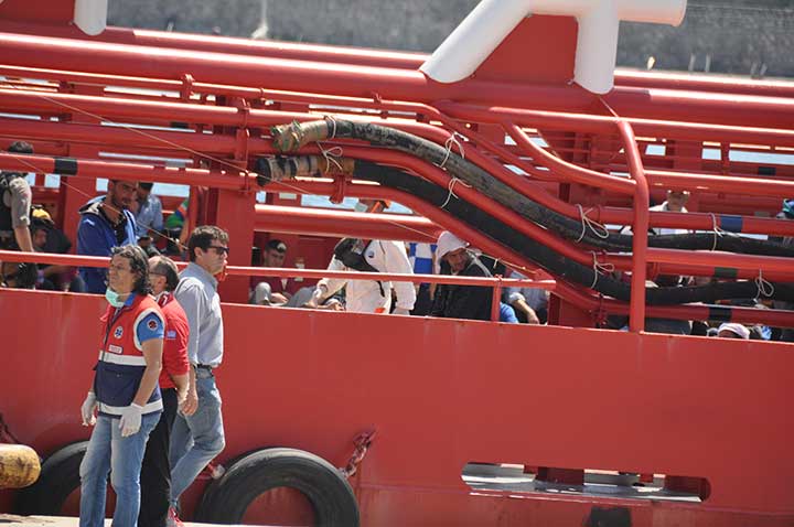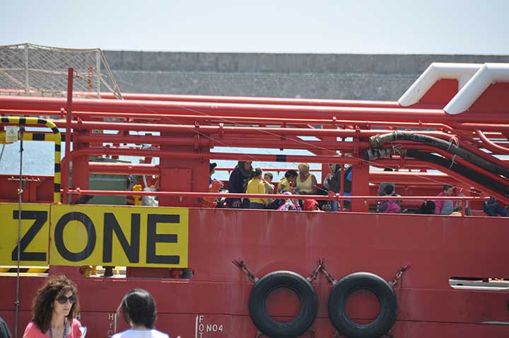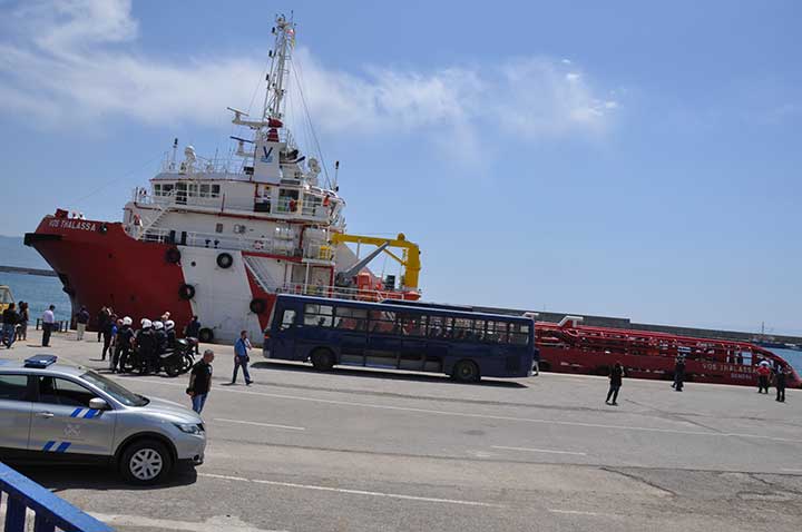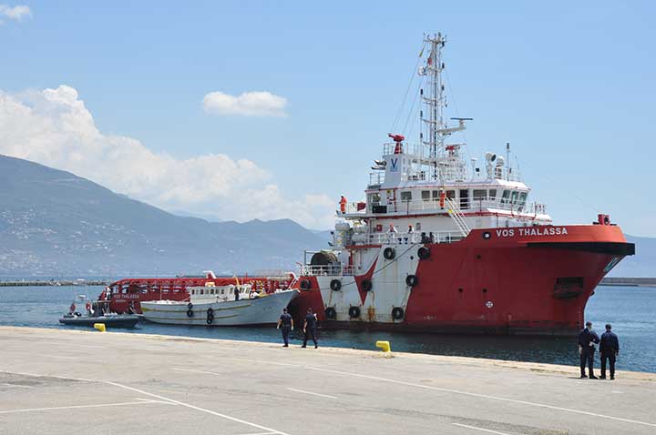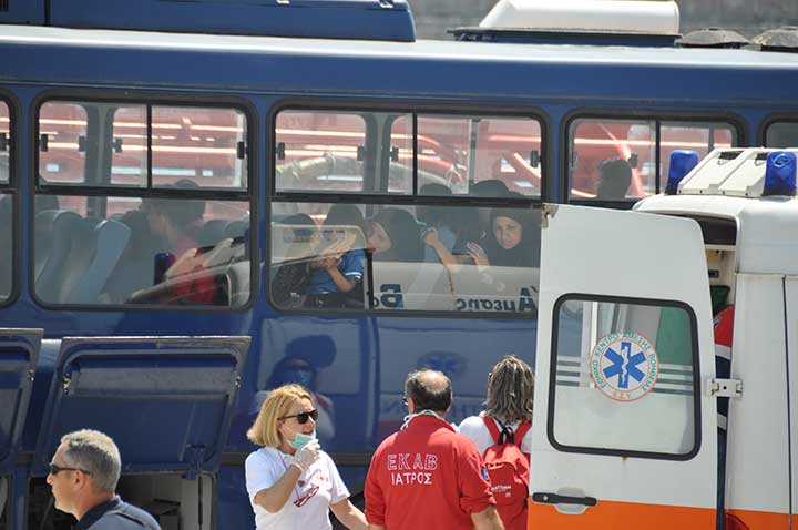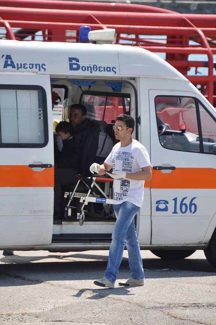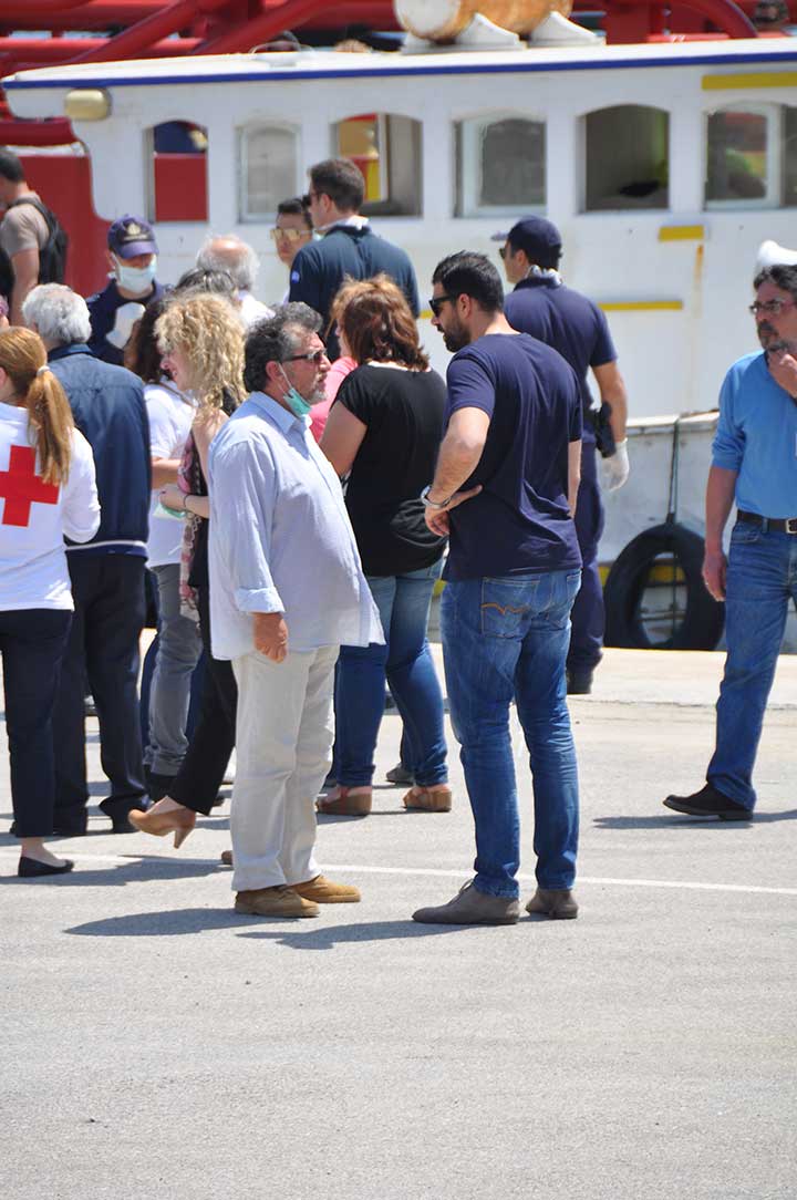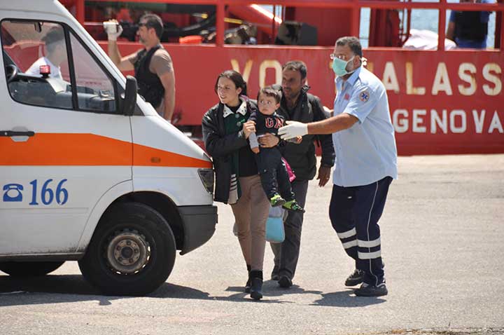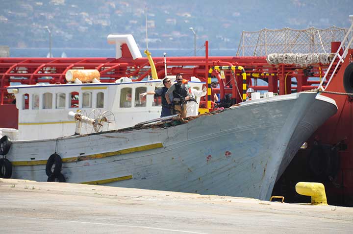 Η βάρκα τους ρυμουλκήθηκε από το Ιταλικό ρυμουλκό στο οποίο επιβιβάστηκαν και το μεσημέρι αποβιβάστηκαν στο λιμάνι της Καλαμάτας. Οι εικόνες που αντίκρυσαν οι εθελοντές ήταν πραγματικά συγκλονιστικές. Μάλιστα, διακομίστηκαν στο Νοσοκομείο Καλαμάτας 7 άτομα συνολικά, μεταξύ των οποίων το βρέφος, παιδιά και μια γυναίκα με εγκαύματα λόγω της έκθεσης στον ήλιο, στη διάρκεια του ταξιδιού. Οι εθελοντές και οι εκπρόσωποι όλων των φορέων αντίκρυσαν ακόμα και περιπτώσεις ανθρώπων σε ημιλιπόθυμη κατάσταση, ενώ τα βλέμματα όλων όσοι βρέθηκαν κοντά στο λιμάνι, την ώρα που έδενε το καράβι, έπεσαν πάνω στα πολλά μικρά παιδιά. Αλλα ήταν χωμένα στην αγκαλιά των γονιών τους και άλλα έπαιζαν ακόμα και μπάλα, χωρίς να έχουν ενδεχομένως αντιληφθεί όσα συμβαίνουν.