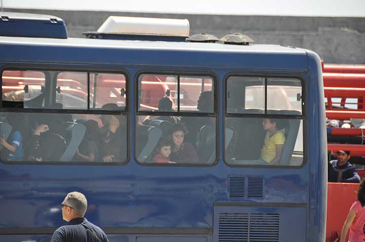Οι υπόλοιποι μεταφέρθηκαν με στρατιωτικό πούλμαν στο Δημοτικό Στάδιο Καλαμάτας, όπου είχε προετοιμαστεί με μέριμνα του δήμου και άλλων φορέων ο χώρος κάτω από τις κερκίδες. Εκεί, αφού τους παρασχέθηκαν οι Πρώτες Βοήθειες, ξεκίνησε η καταγραφή τους από το Λιμενικό και την Αστυνομία.