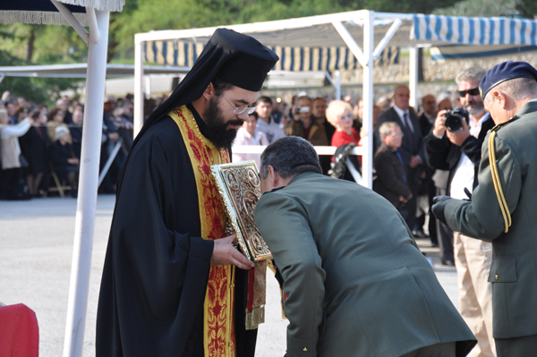 Την ημερήσια διαταγή διάβασε ο διοικητής του στρατοπέδου, συνταγματάρχης Δημήτρης Αρβανίτης.