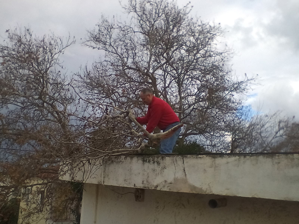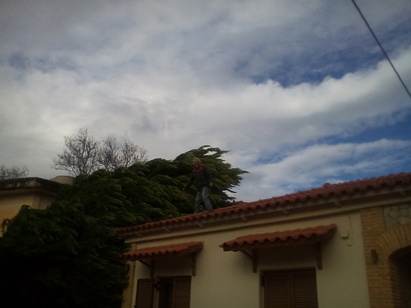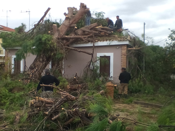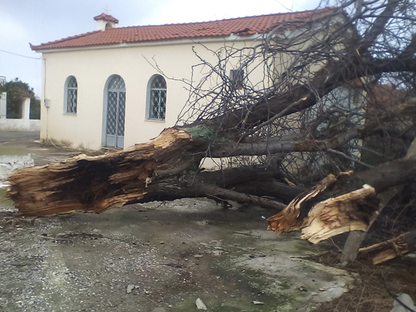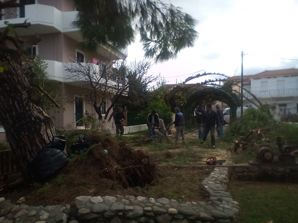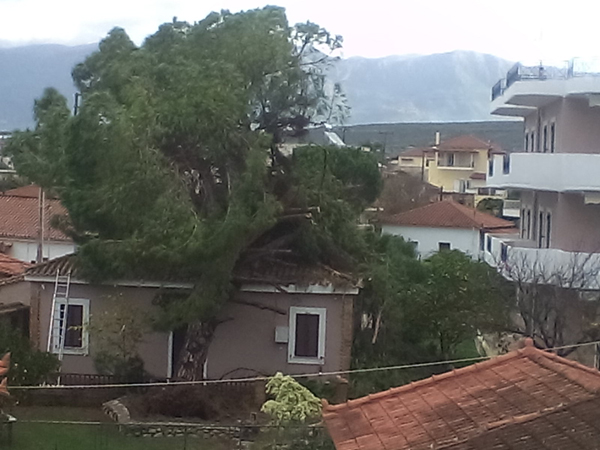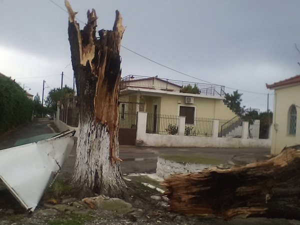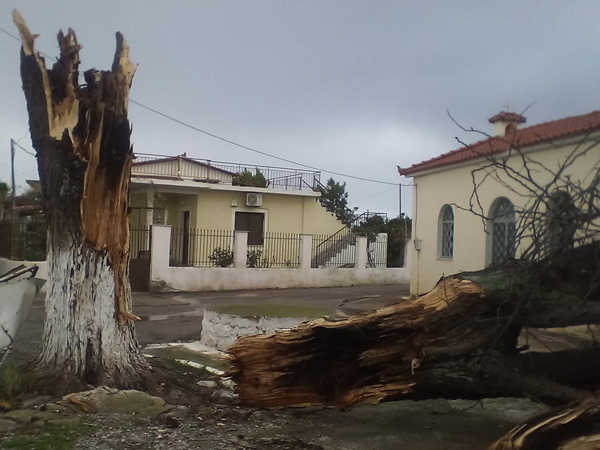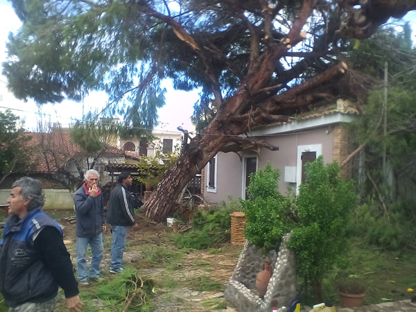 Ο Κώστας Δημητρόπουλος που είδε ένα μεγάλο δέντρο να πέφτει πάνω στο σπίτι του μας είπε «περίπου στις 1.30 ακούστηκε ένας δυνατός θόρυβος , γινόταν κυριολεκτικά χαμός , άκουσα ότι κάτι έπεσε στην στέγη του σπιτιού και έσπασαν κεραμίδια με αποτέλεσμα να αρχίσει να στάζει , ενώ λαμαρίνες και διάφορα άλλα αντικείμενα από το διπλανό κτήριο – το Φουρναράκειο- χτυπούσαν εδώ και εκεί κάνοντας μεγάλο θόρυβο. Ήταν μια πρωτόγνωρη κατάσταση η οποία κράτησε περίπου πέντε λεπτά, στην συνέχεια είδαμε τι είχε συμβεί τα δέντρα που είχαν πέσει και τα διάφορα αντικείμενα που είχαν εκσφενδονιστεί»